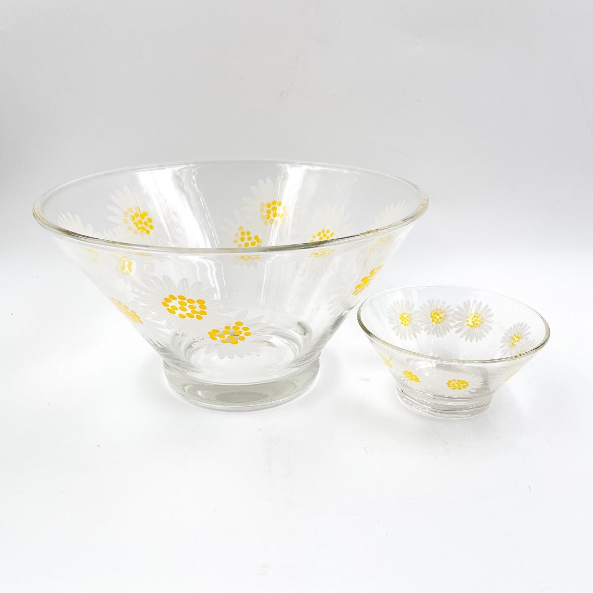 VINTAGE ANCHOR HOCKING YELLOW DAISY GLASS CHIP AND DIP BOWLS