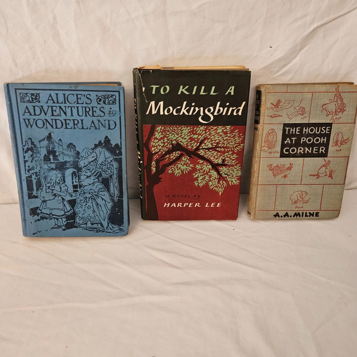 A collection of appropriately 24 books that range in publication dates from the late 1800's to the mid 1950's. Includes what appears to be a first edition of Catcher in the Rye and early printings of books by A.A. Milne. See attached pictures for more detail about condition. Shipping Available.