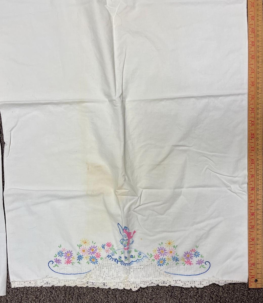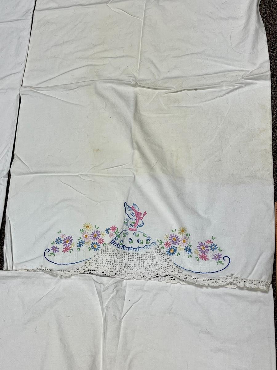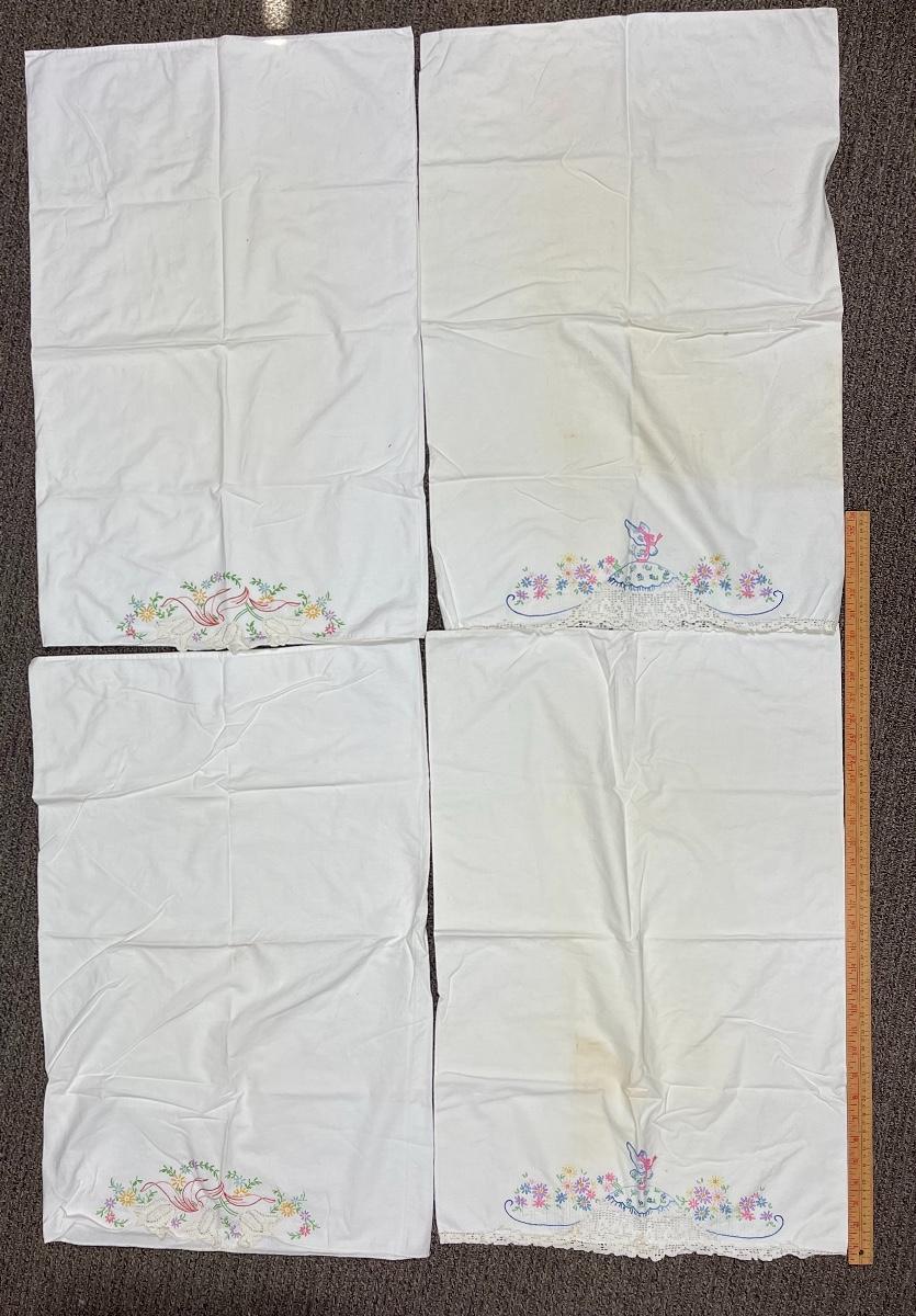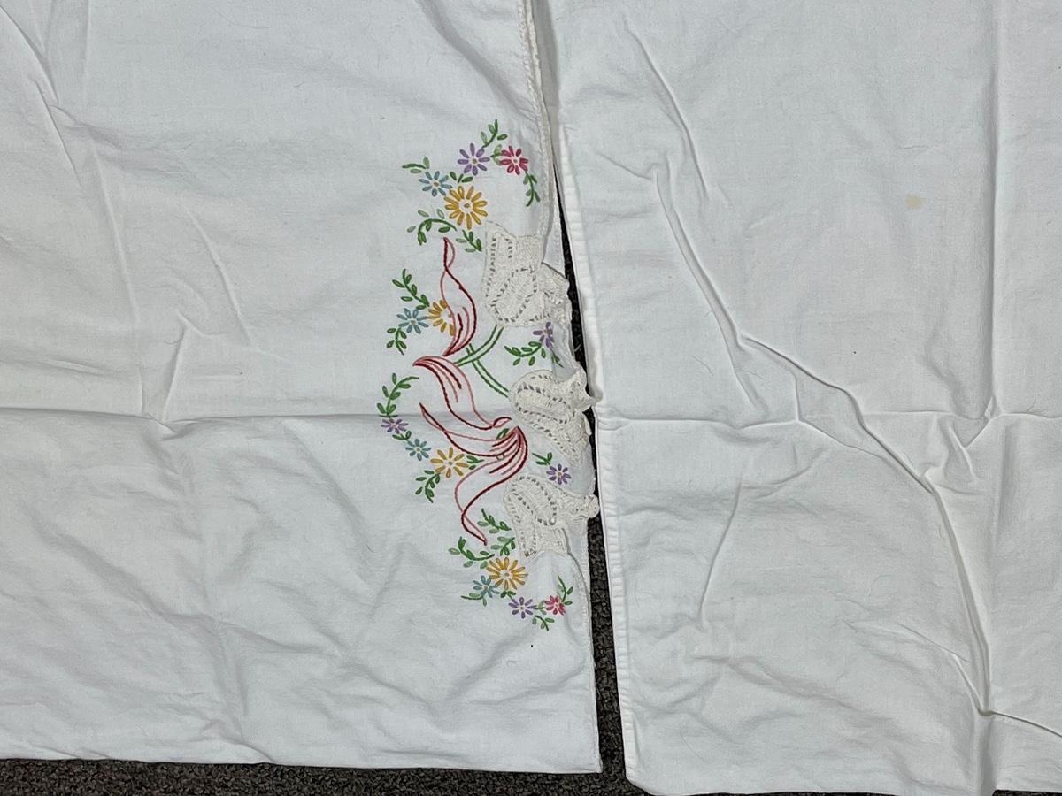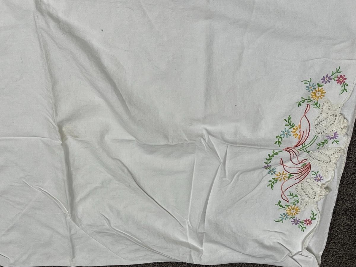 Vintage and Linen pillowcases with embroidered ends