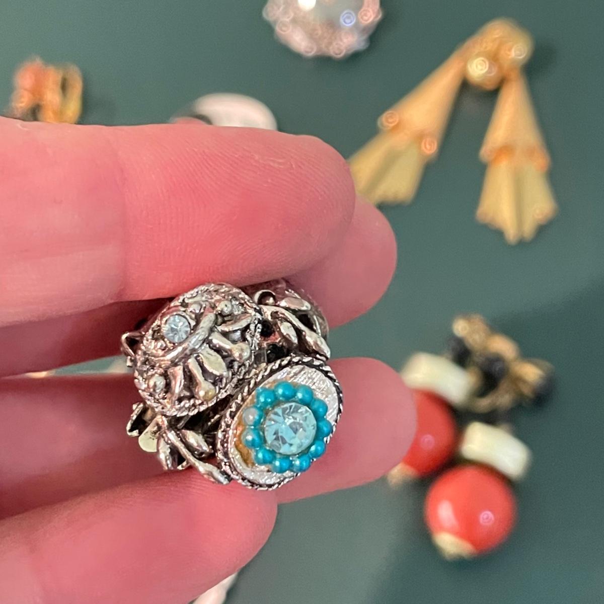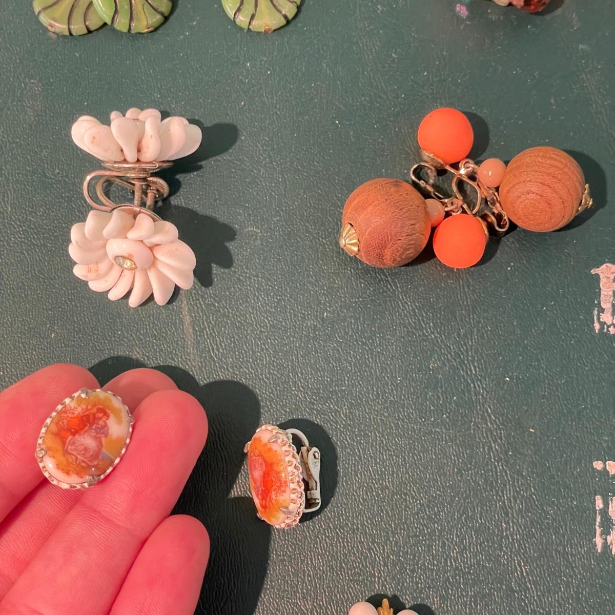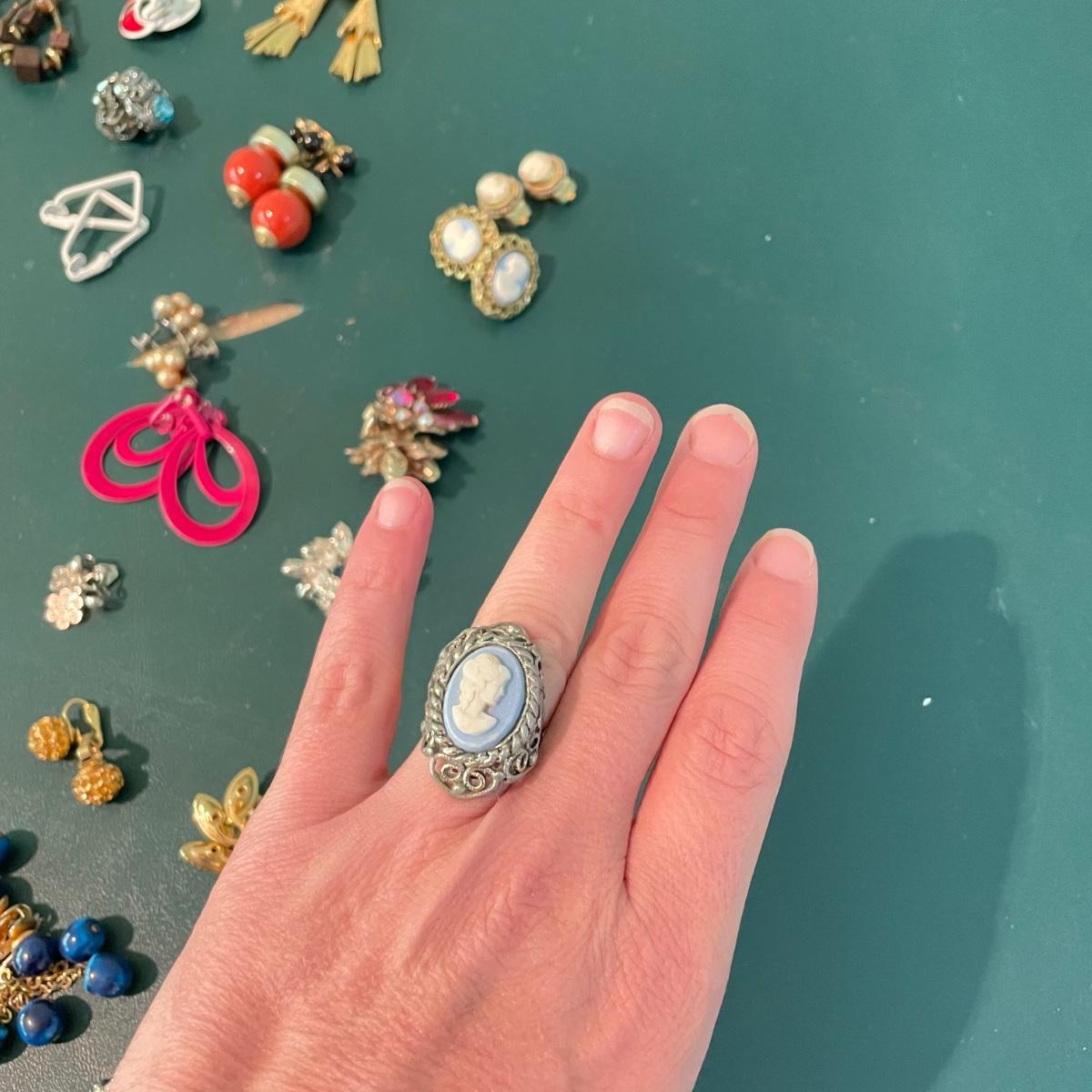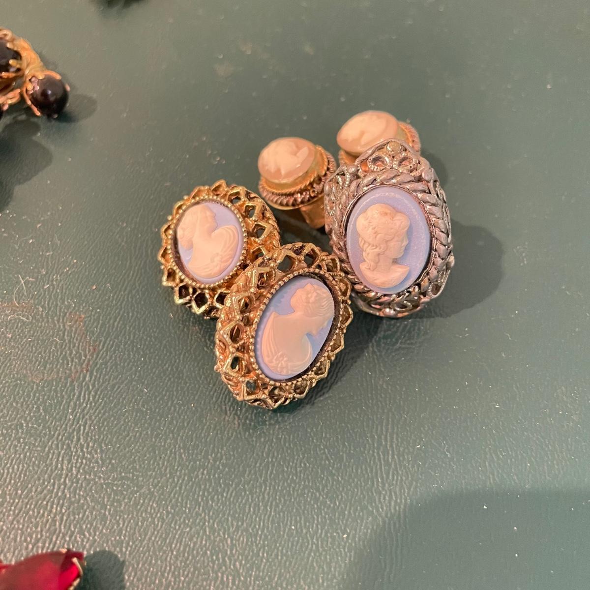 Vintage and Newer Clip Earrings Plus Cameo Style Ring (M-SS)