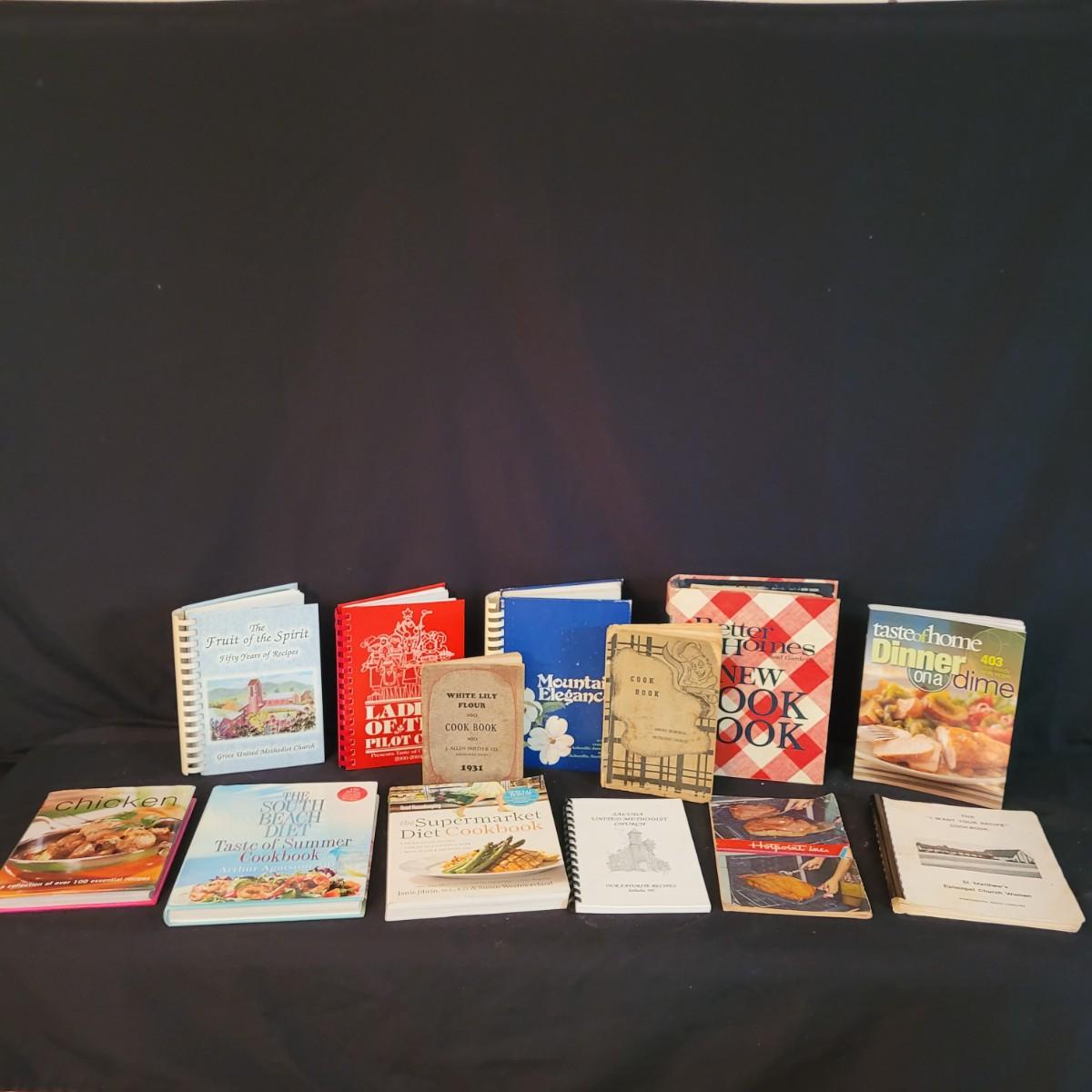 A collection of newer and vintage cookbooks, including local Asheville and regional WNC church cookbooks. Shipping available.