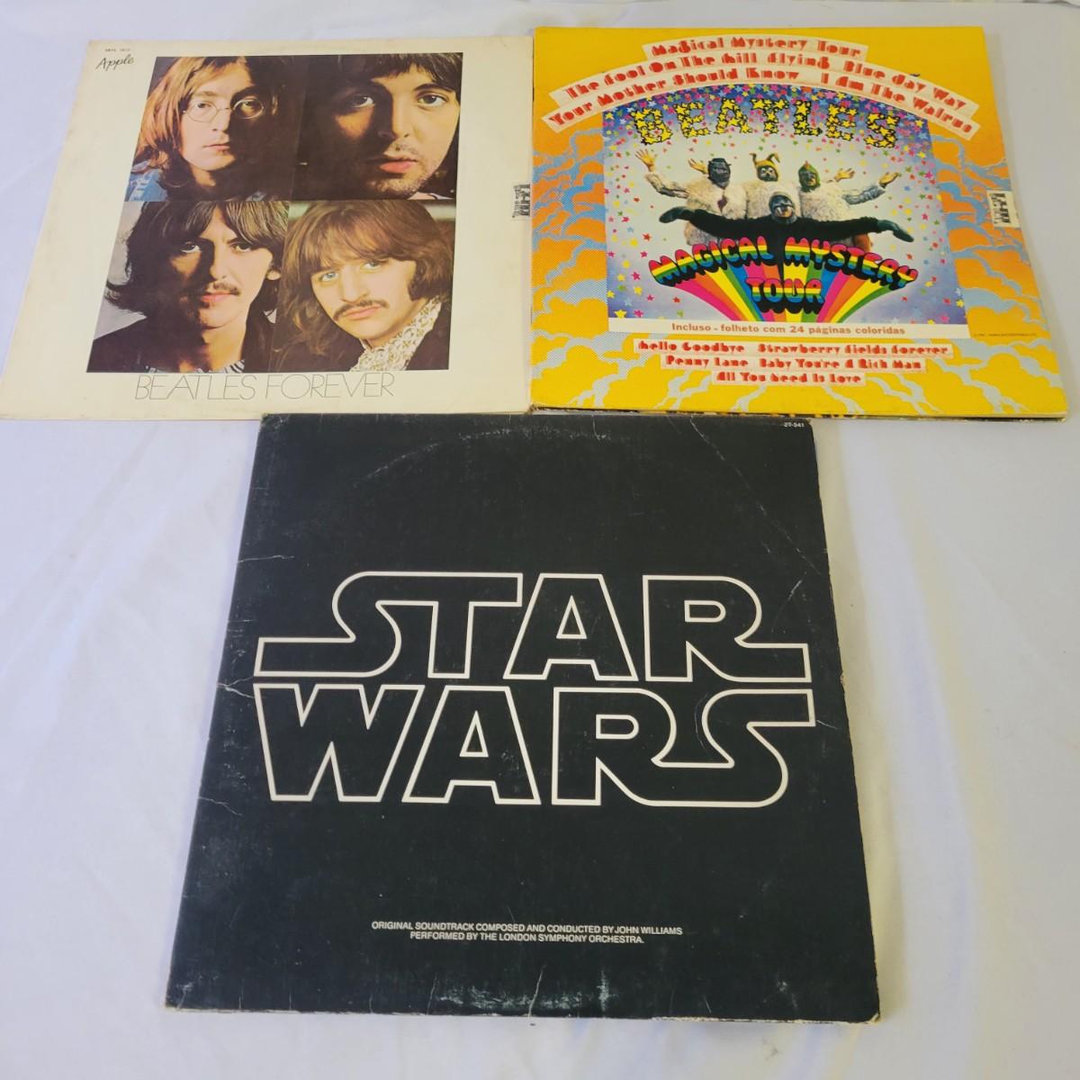 An assortment of three vintage albums from the 70's. Included is a two piece of the original soundtrack for Star Wars preformed by the London Symphony Orchestra. Also includes two Beatles albums labeled in Portugal: Magical Mystery Tour and Beatles Forever. Shipping available. All sales are final. No returns or refunds. Please bid accordingly.