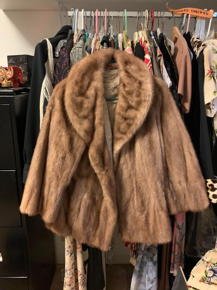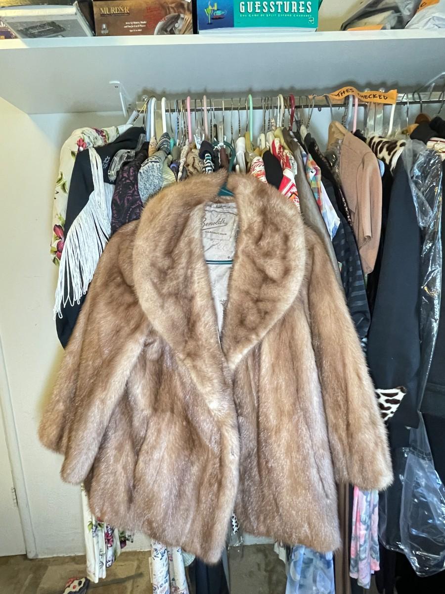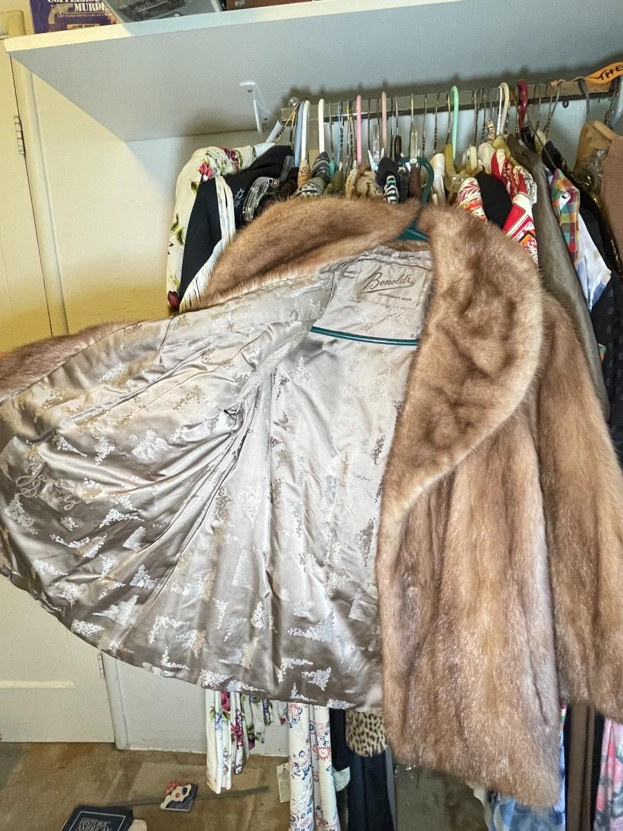 Mostly medium sizes. Not checked for damage. Includes a mink short coat, lined. Approximately 45 items.