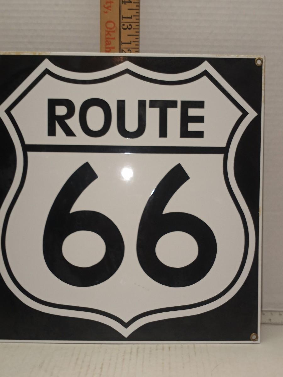 VINTAGE ANDE ROONEY ROUTE 66 ENAMEL PORCELAIN METAL SIGN 11" x 12"