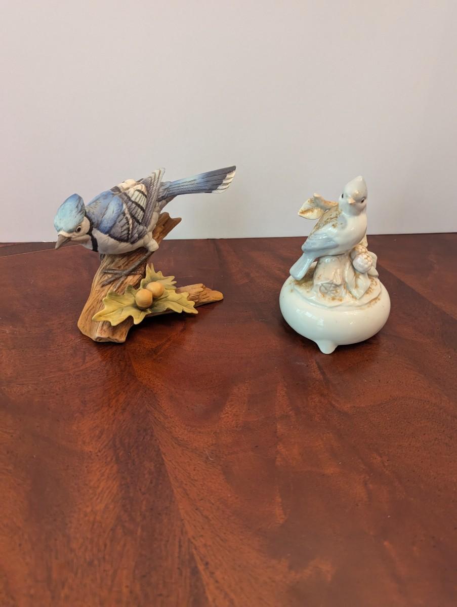 Vintage Andrea By Sadek Blue Jay & Vintage Blue Bird On Tree Branch Music Box