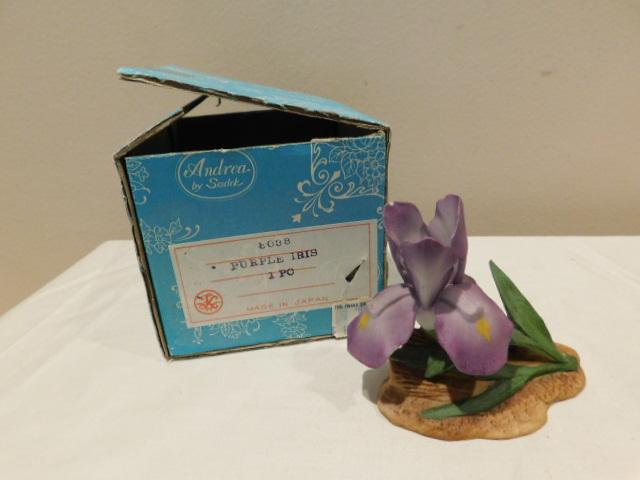 Vintage Andrea by Sadek Purple Iris Porcelain Flower with Box