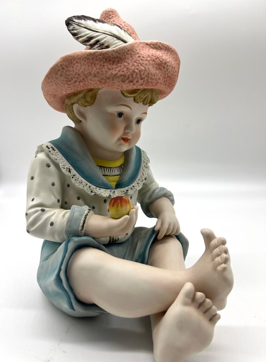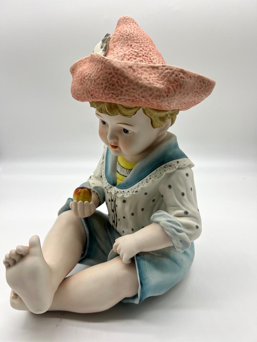 Vintage Andrea Piano Baby #6161 By Sadek Piano Baby, #6161 Apple Boy, Andrea Sadek, porcelain figurine. Measures 12 inches tall and approximately 9 inches deep.