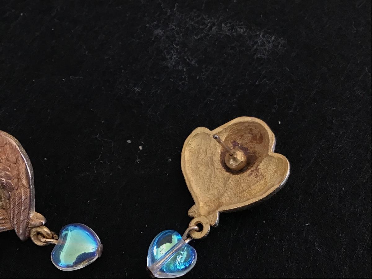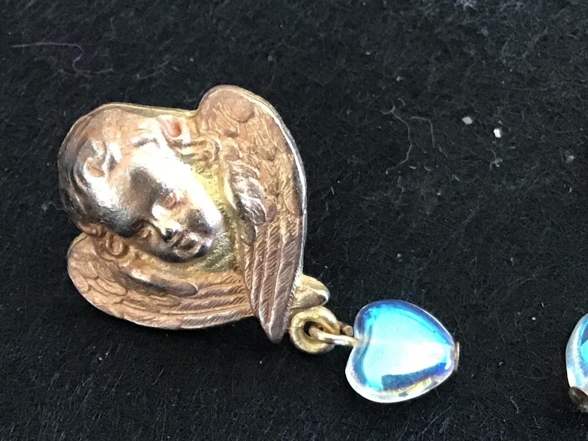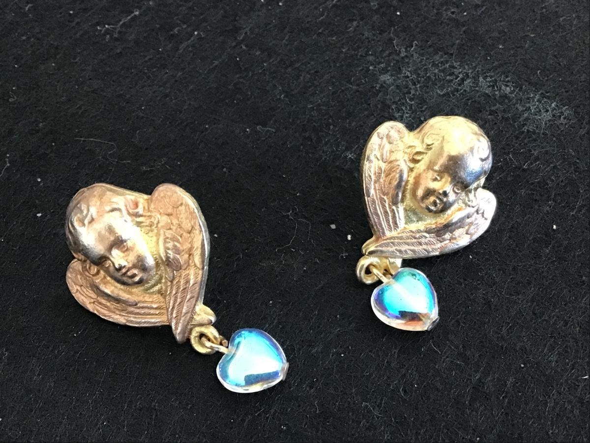 Vintage Angel Cherub Earrings with Glass Hearts