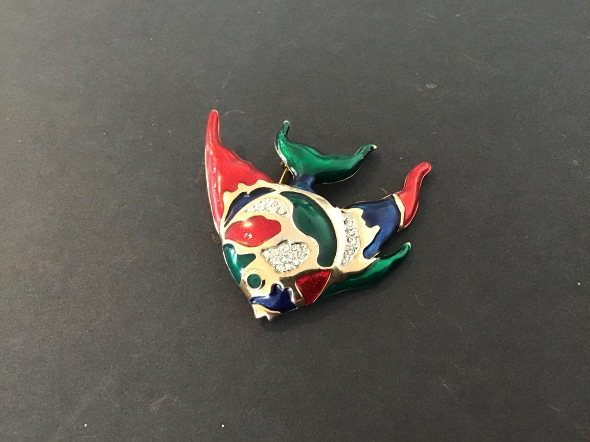 Vintage Angel Fish Enamel Rhinestone Brooch