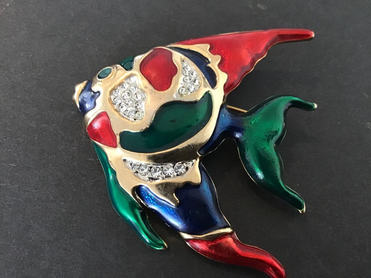 Vintage Angel Fish Enamel Rhinestone Brooch