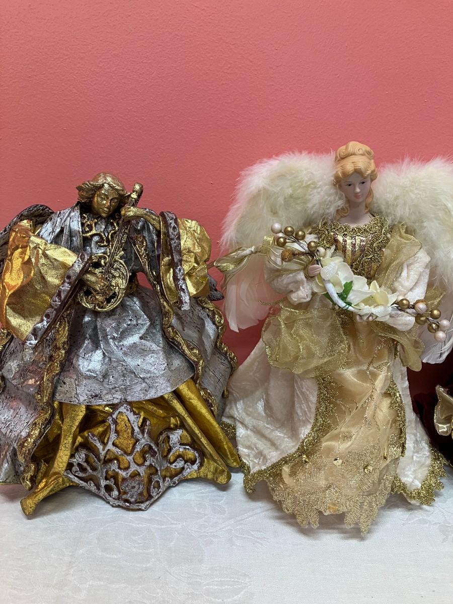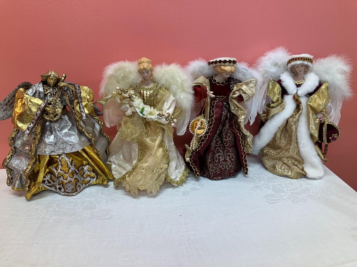 Grouping of 4 vintage angel tree toppers/angel decor