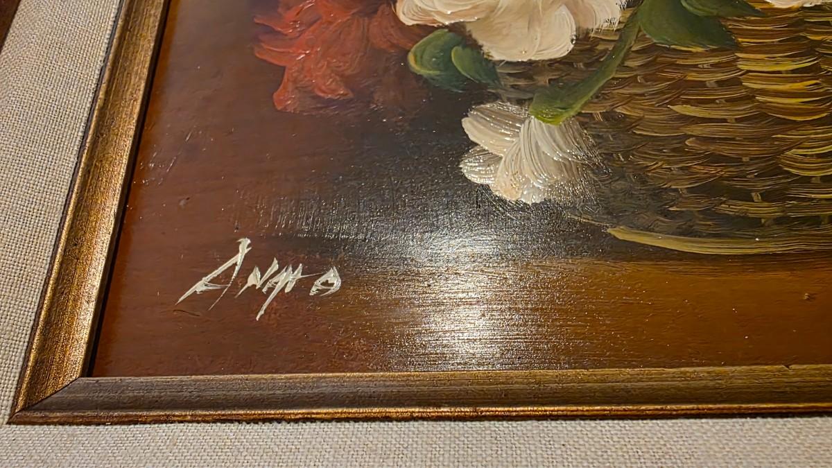 Vintage “Angra” Signed Floral Basket Oil Painting – Heavy Impasto Still Life in Gilt Frame (c. 1960s–1980s)