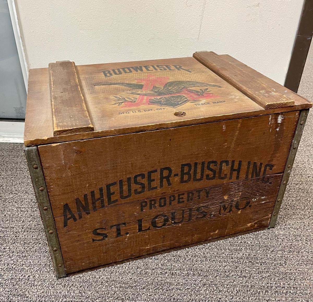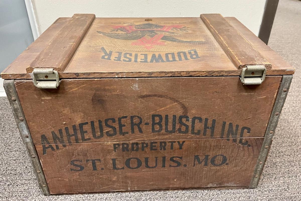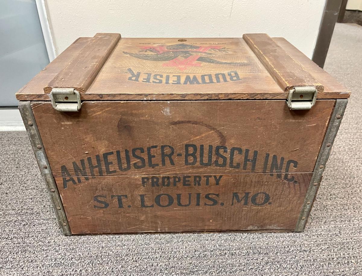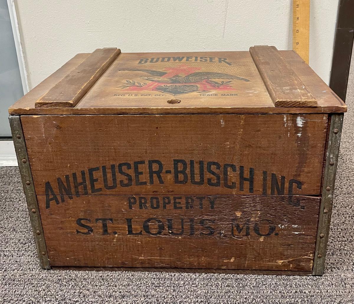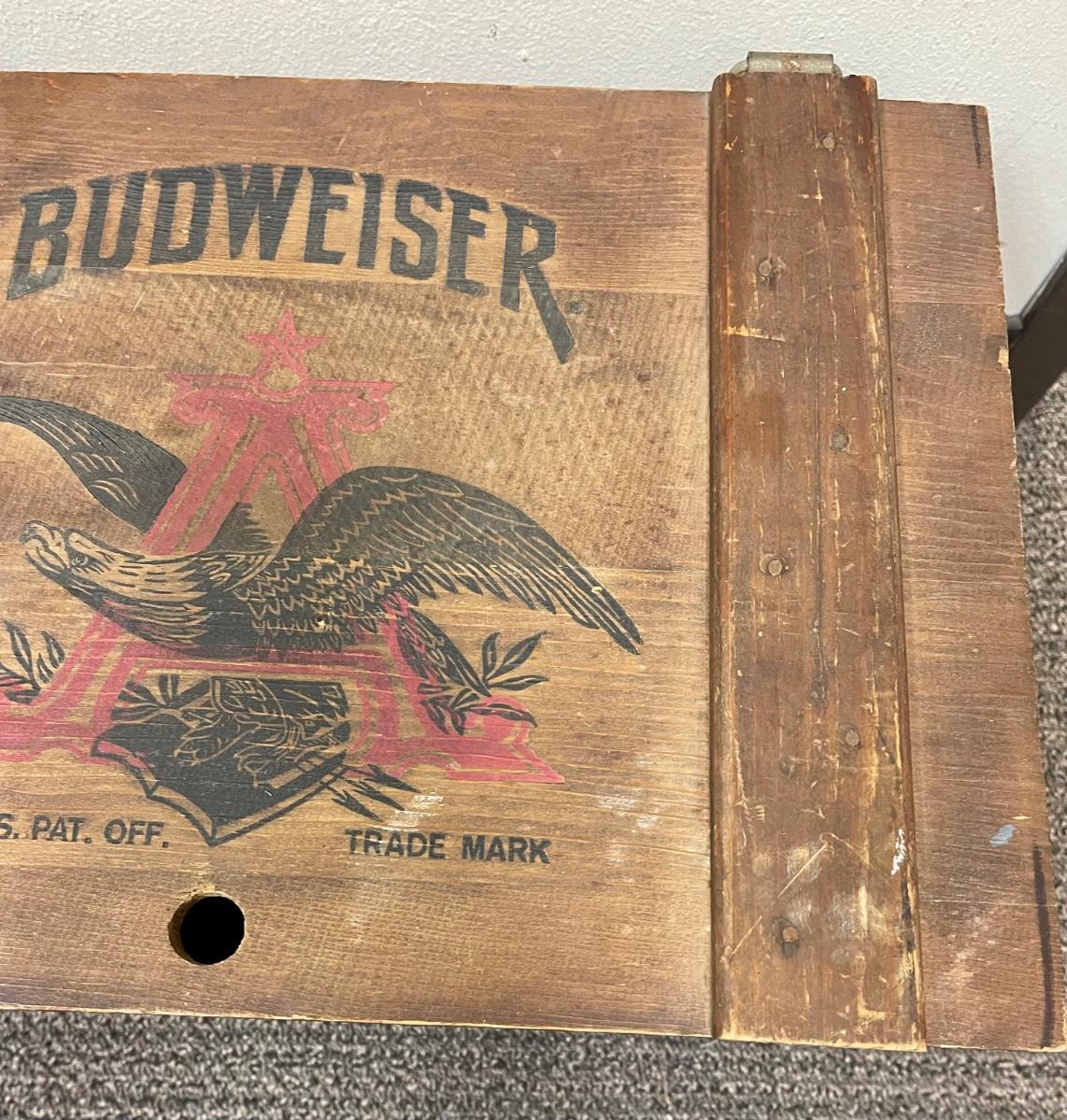 Vintage Anheuser-Busch Budweiser Wooden Box Crate Case with Hinged Lid