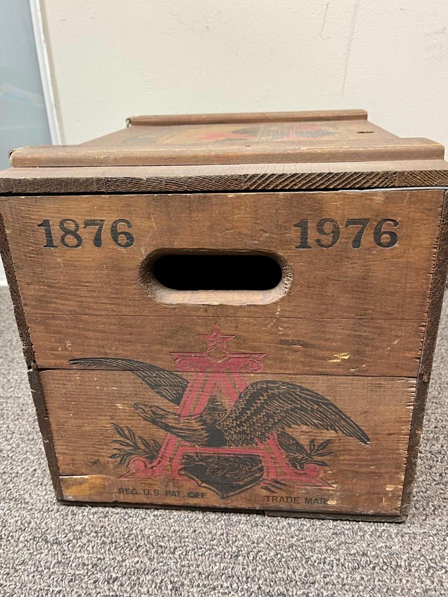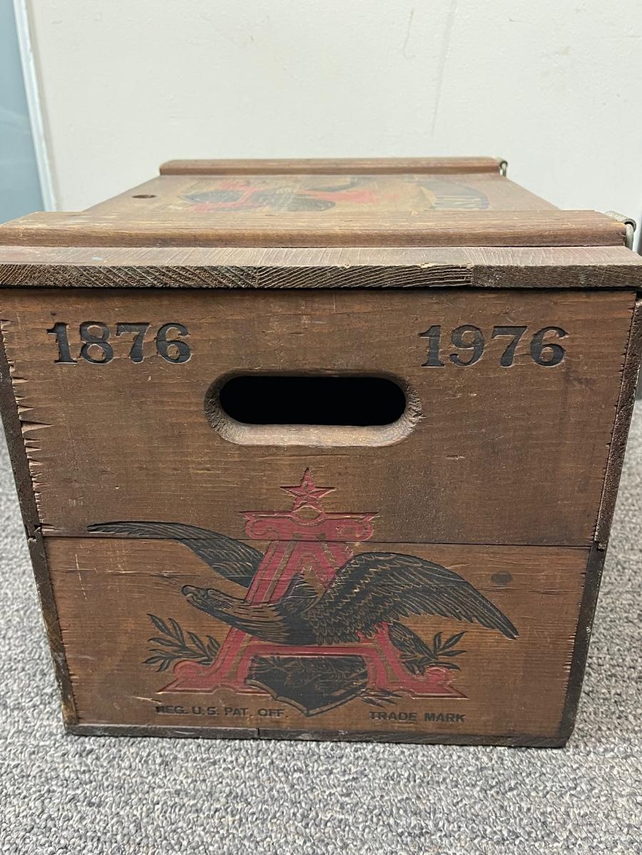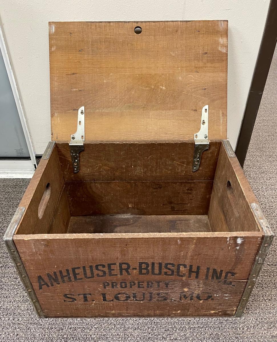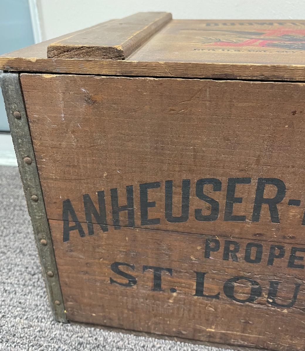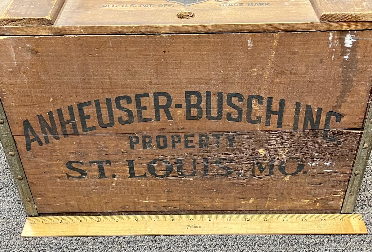 Vintage Anheuser-Busch Budweiser Wooden Box Crate Case with Hinged Lid