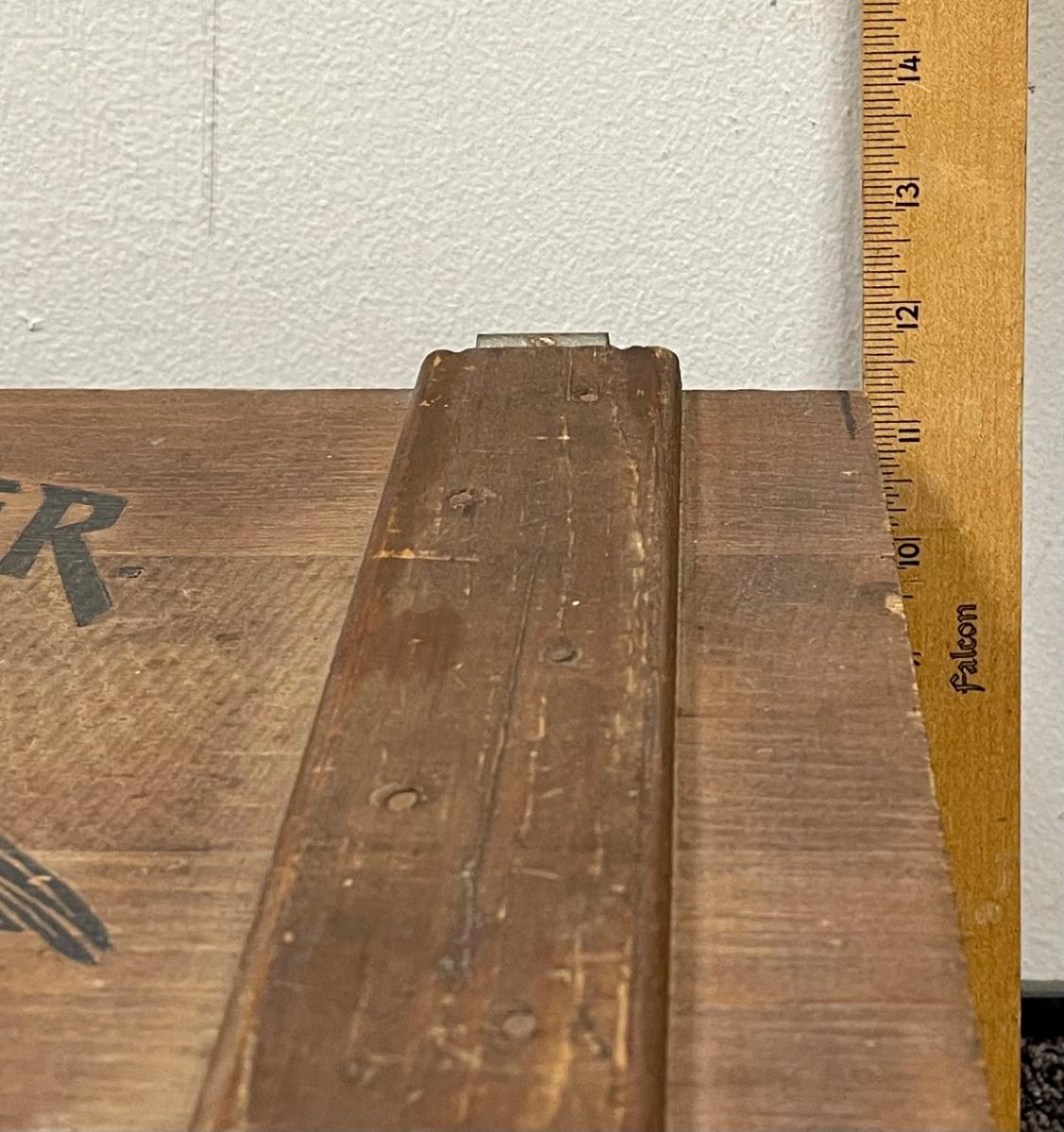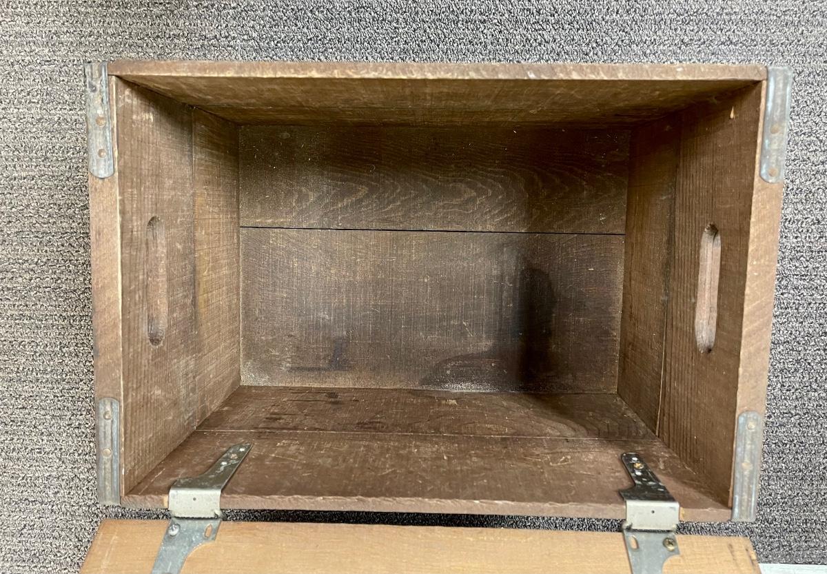 This crate is in good used condition. Hinges are functional, but a little loose.