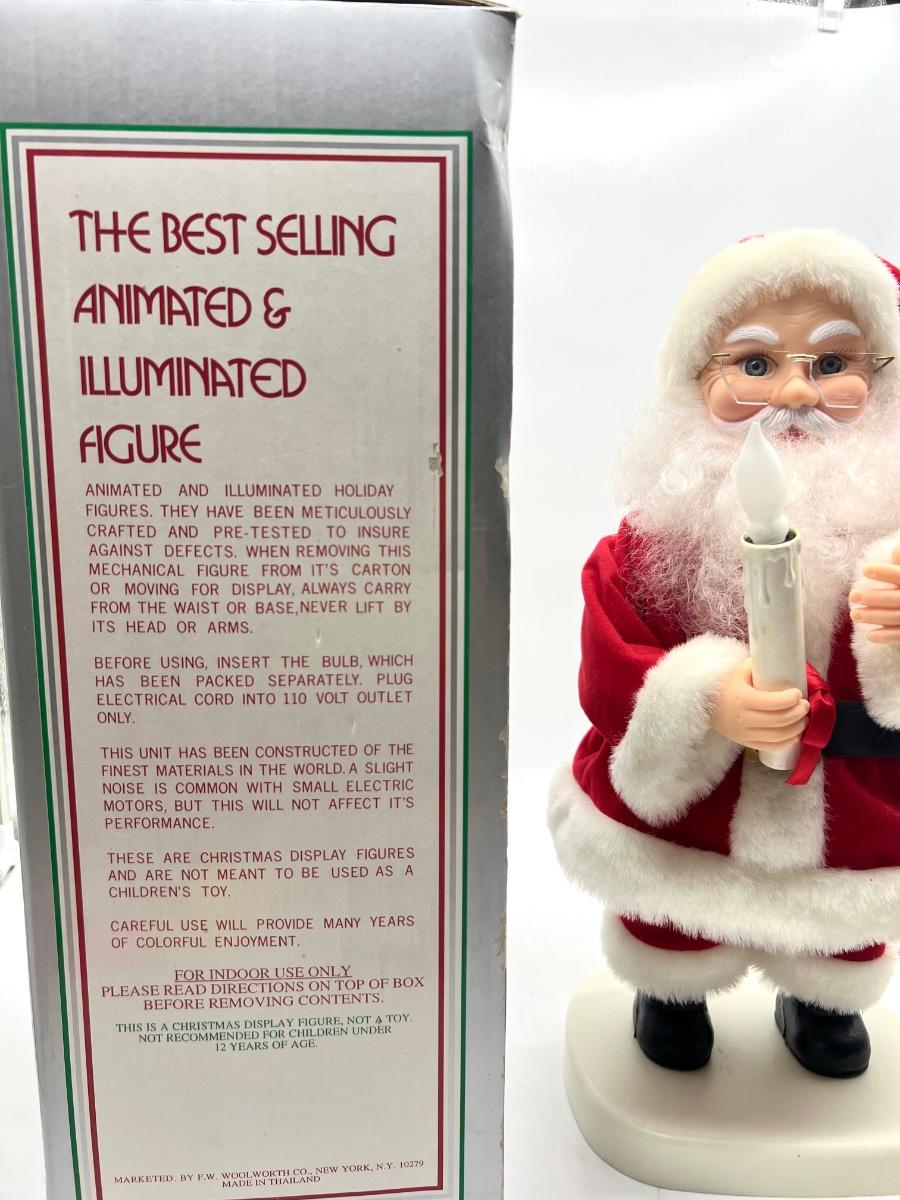 VINTAGE Animated & Illuminated Santa Measures 19 inches tall. Marketed by F. W. WOOL WORTH CO. made In Thailand