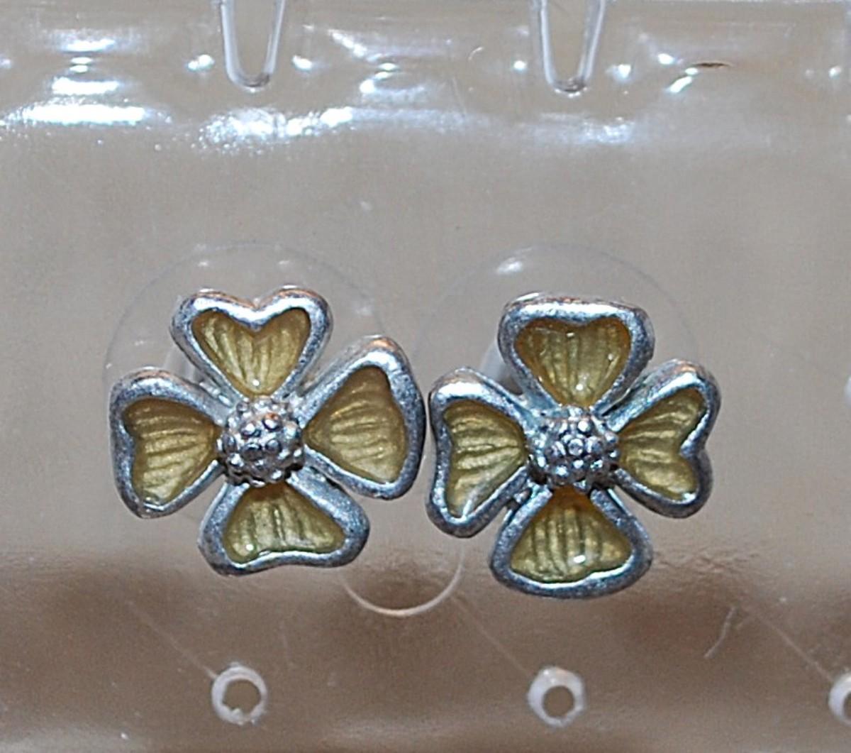 VINTAGE Anne Klein Marked © AK - 4 Leaf Pale Yellow Flower Earrings (¼" x ¼") with New Stud