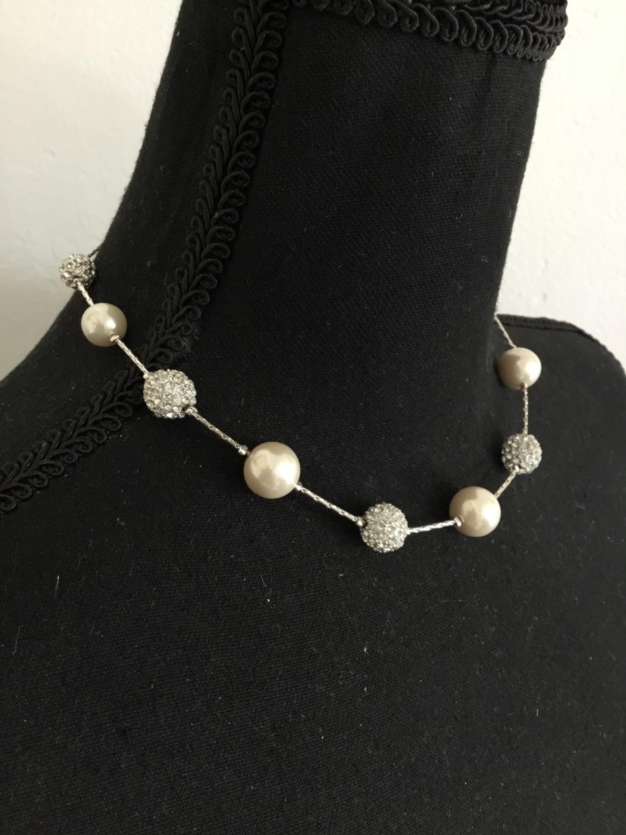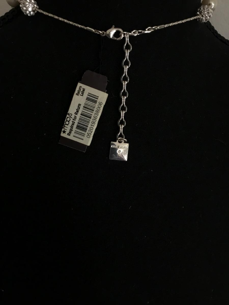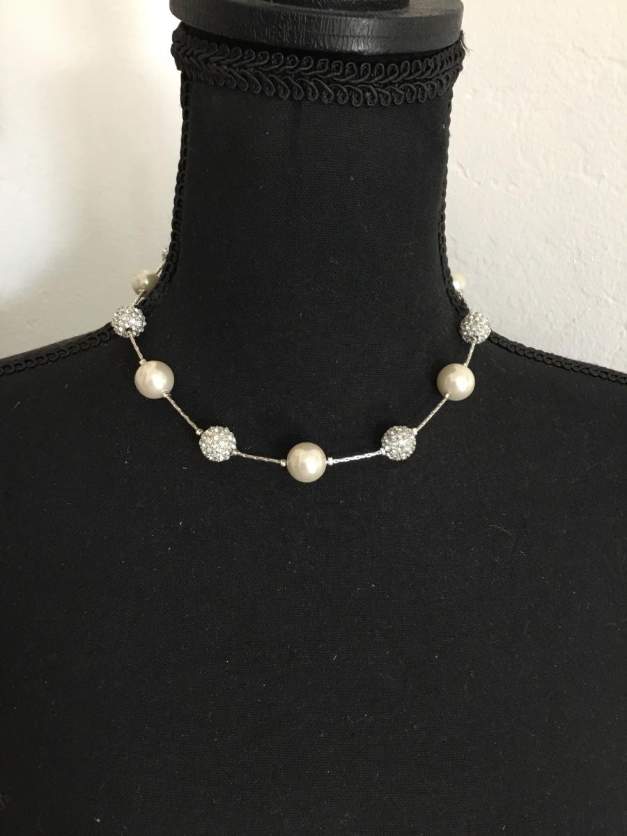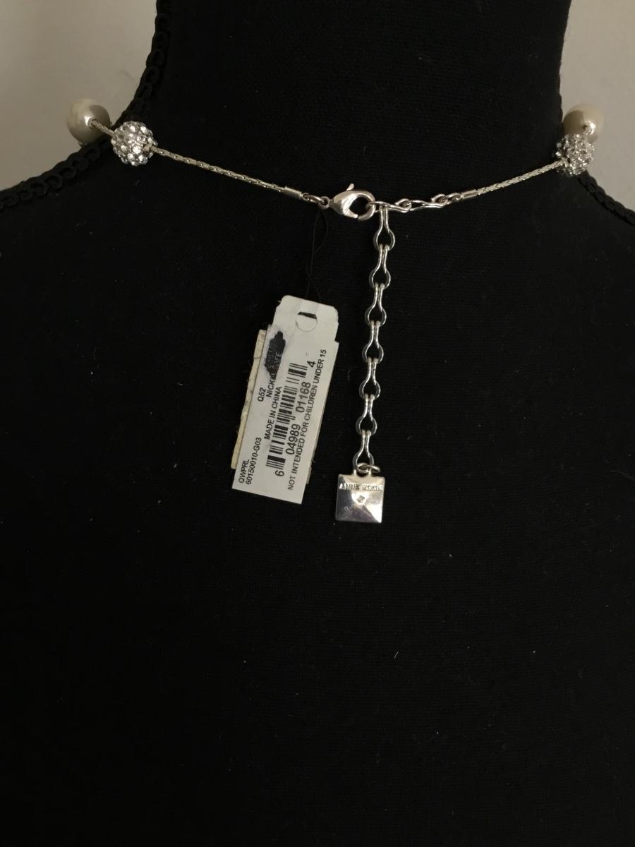 Vintage Anne Klein silver tone rhinestone ball beads with faux pearl statement necklace