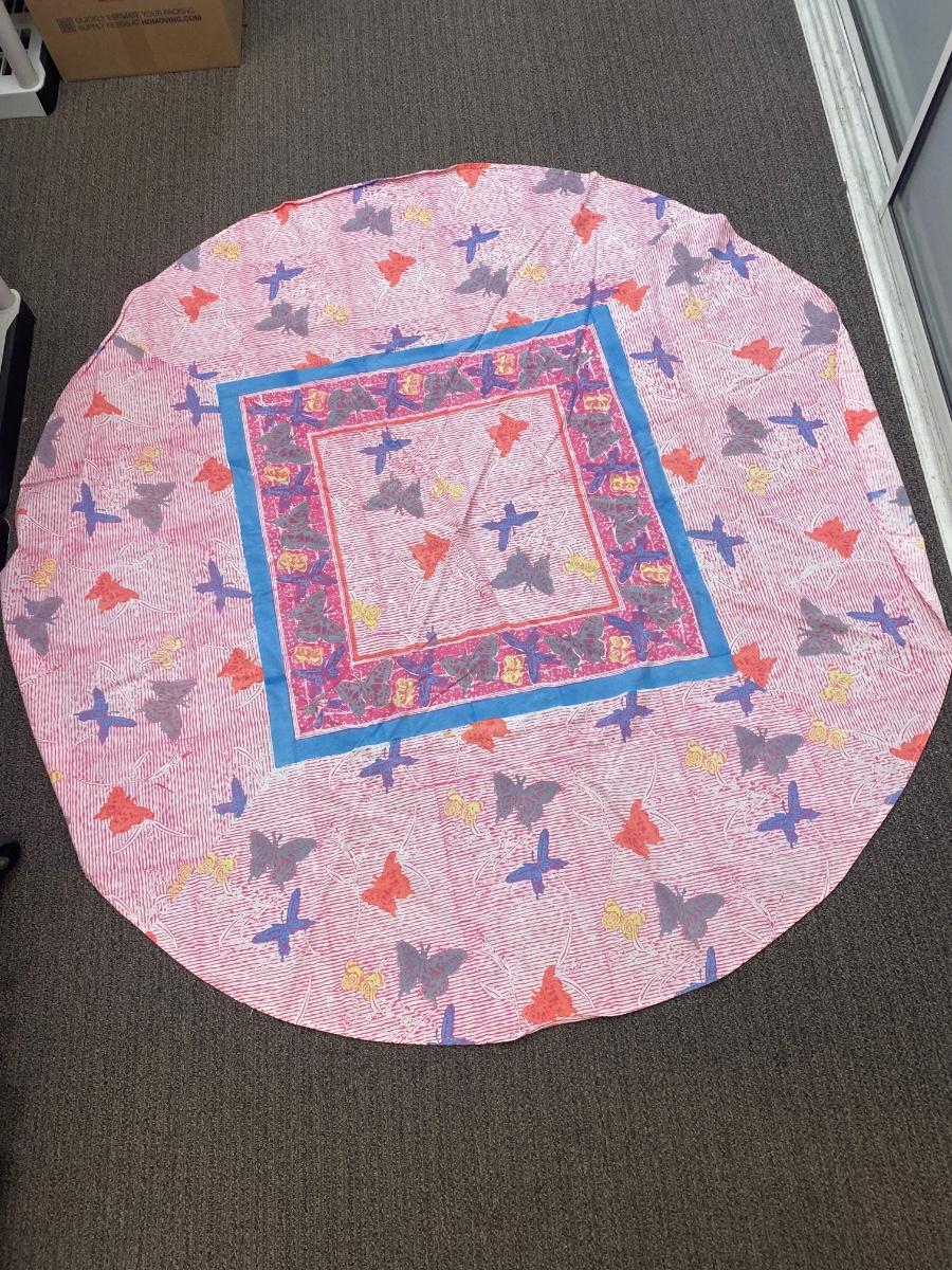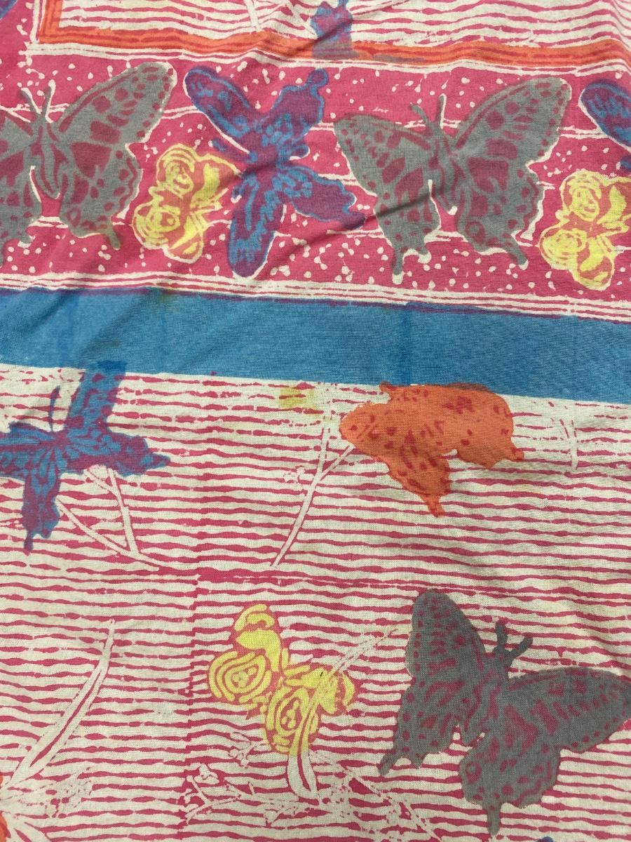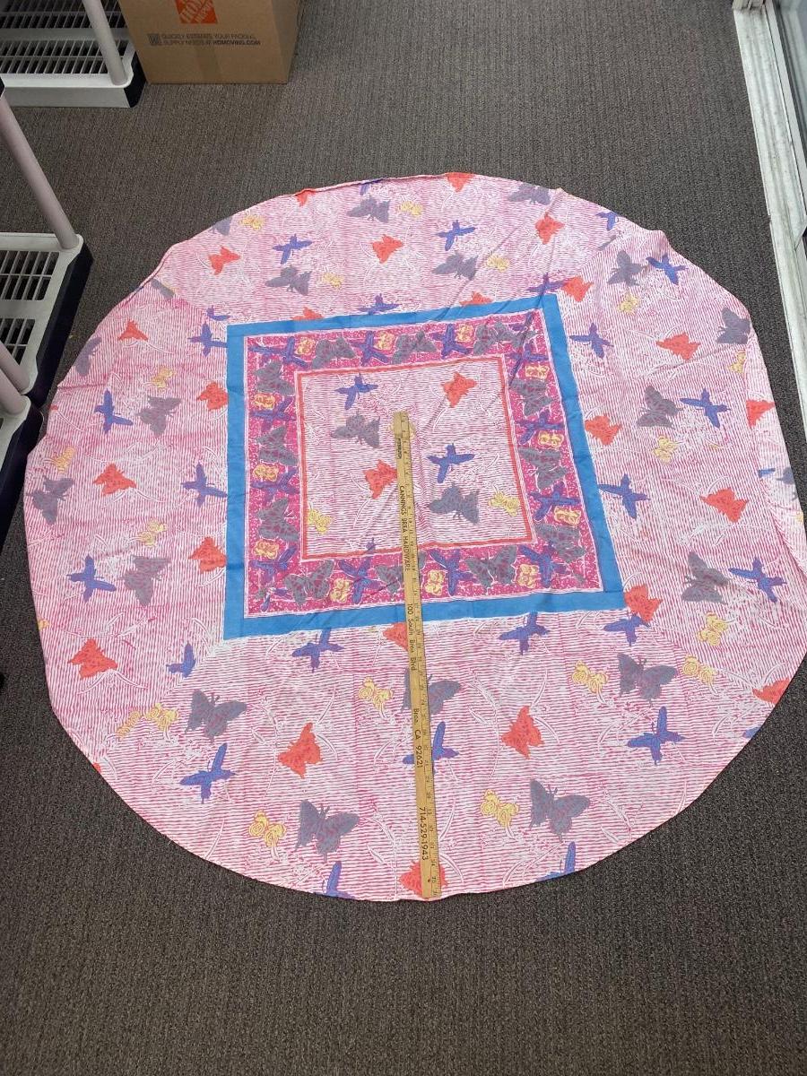 Vintage Anokhi India Cotton Round Tablecloth Pink with Butterflies. In good condition. 69" size.