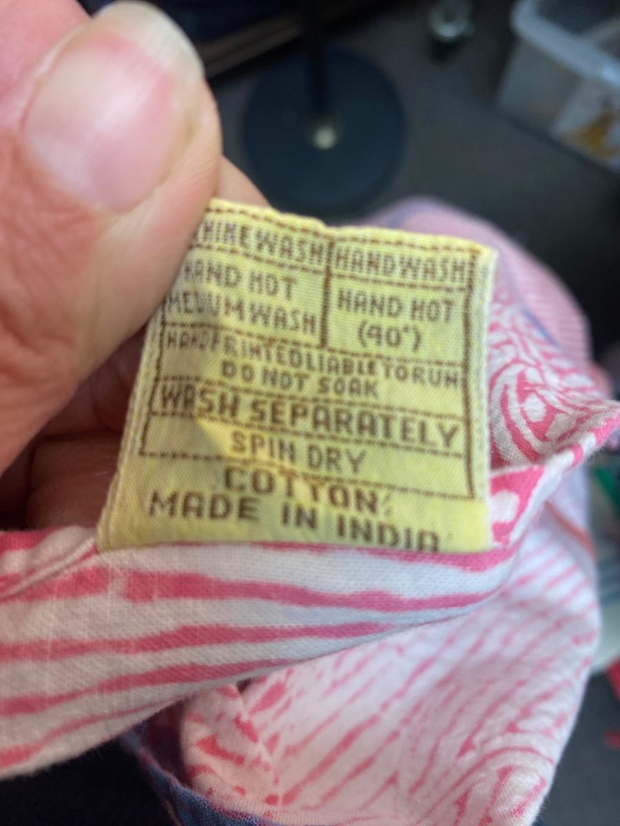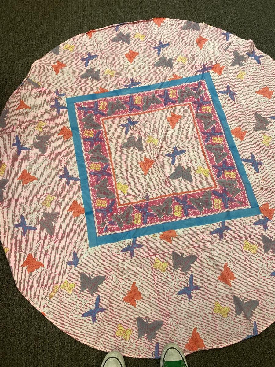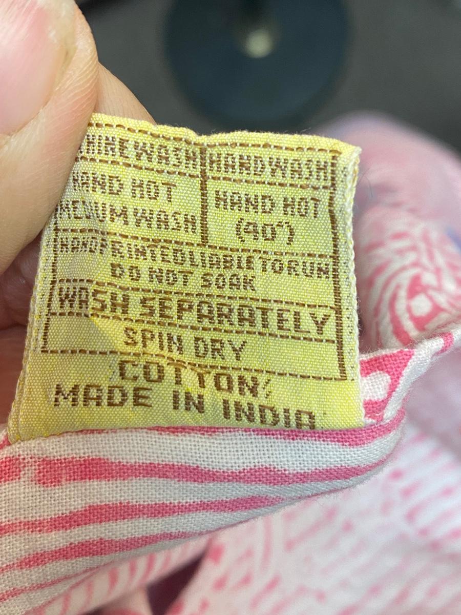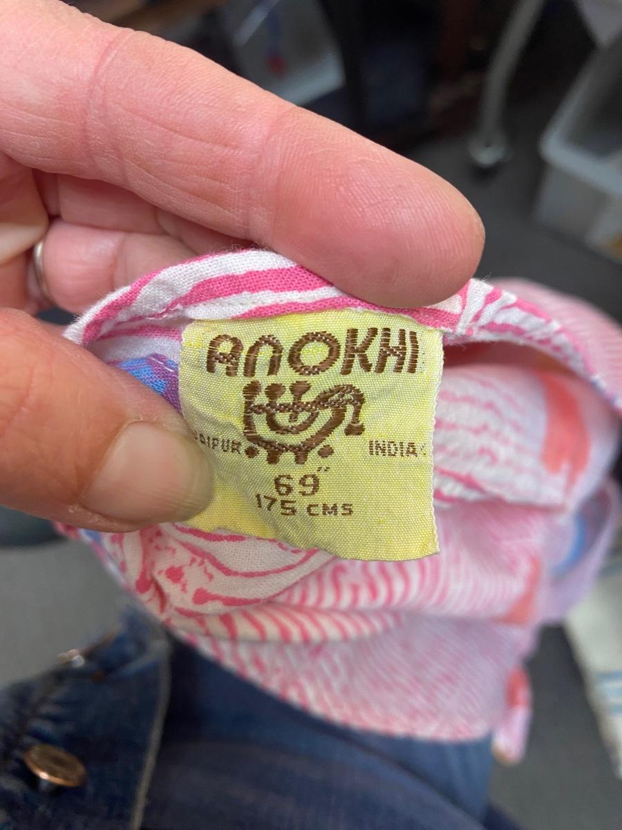 Vintage Anokhi India Cotton Round Tablecloth Pink with Butterflies. In good condition. 69" size.