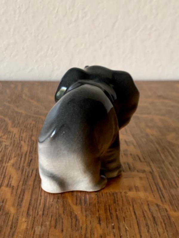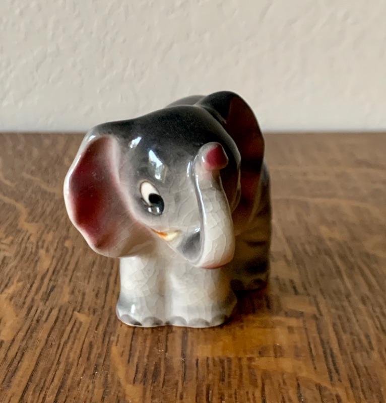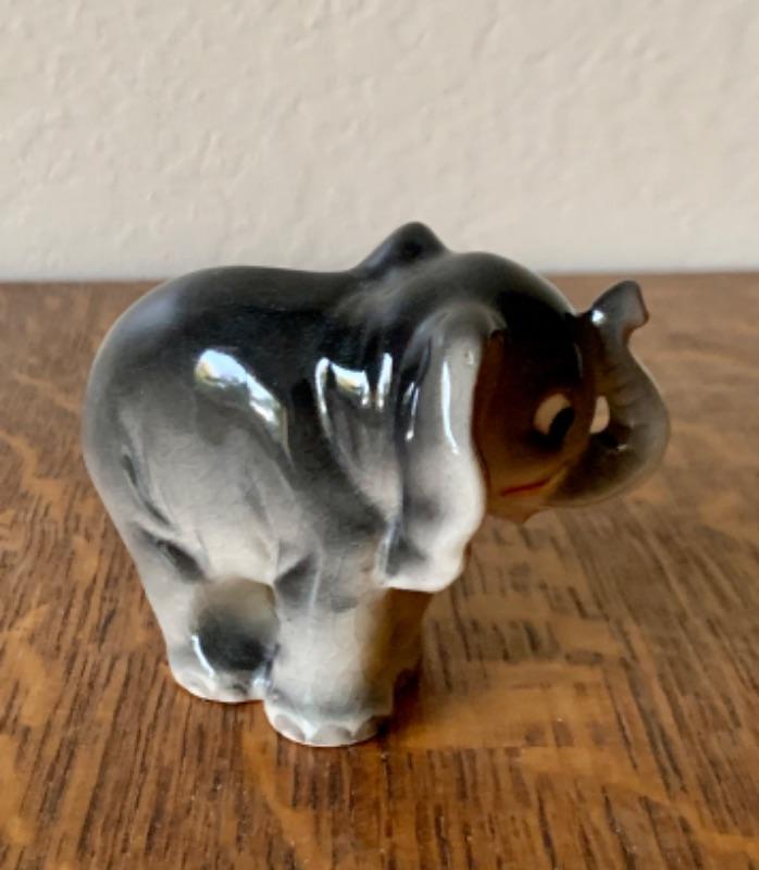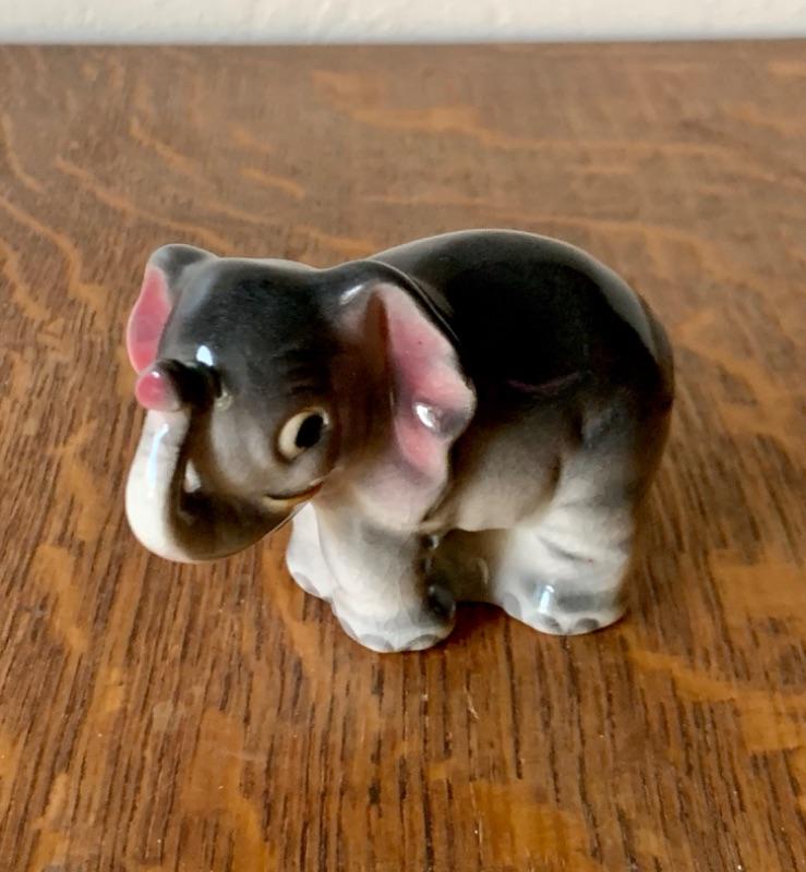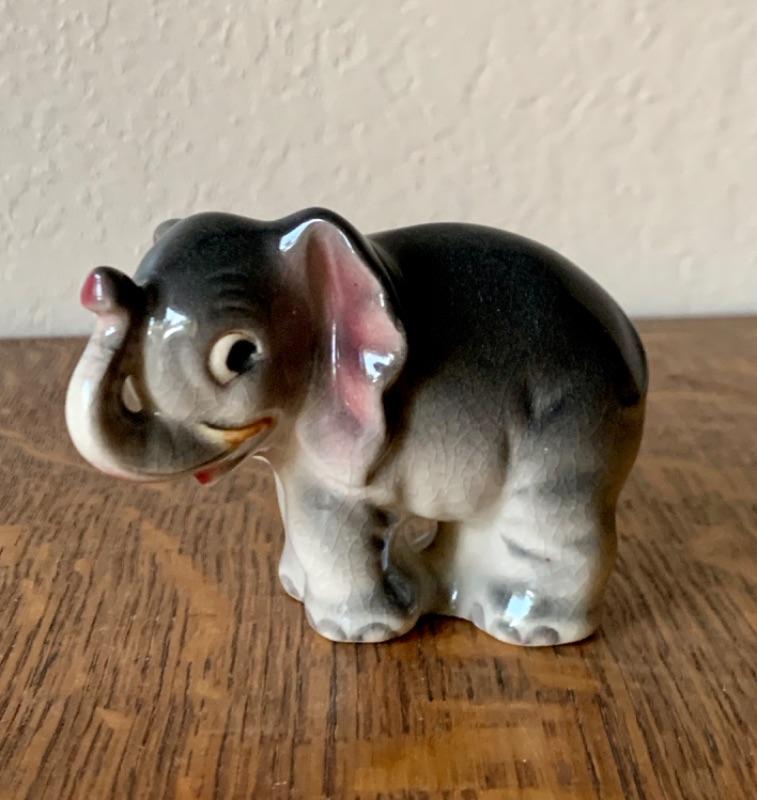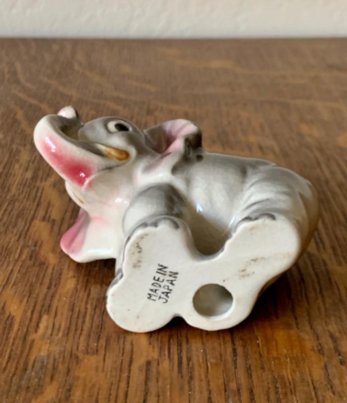 Sweet vintage anthropomorphic elephant figurine, made in Japan. Measures 2 3/4”. No chips, cracks or repairs noted. Light crazing.