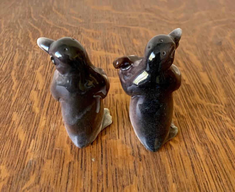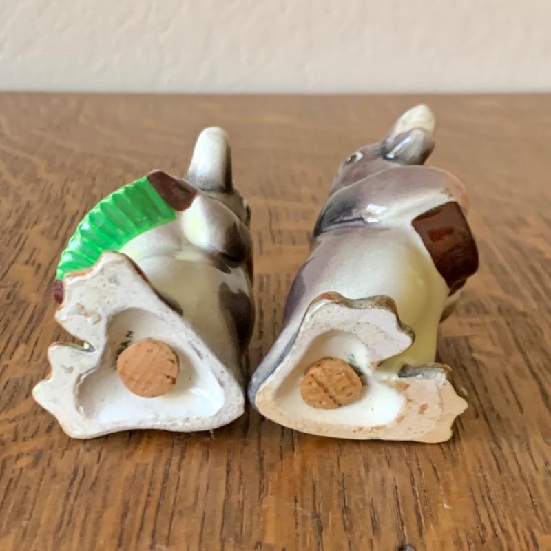 Pair of vintage anthropomorphic Penguin salt and pepper shakers. Both have corks. Minimal crazing. Measures 3 1/4” tall. Made in Japan.