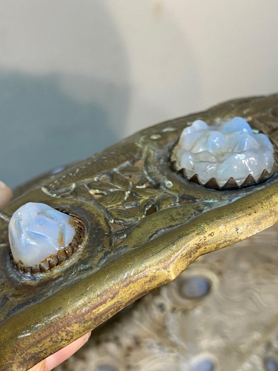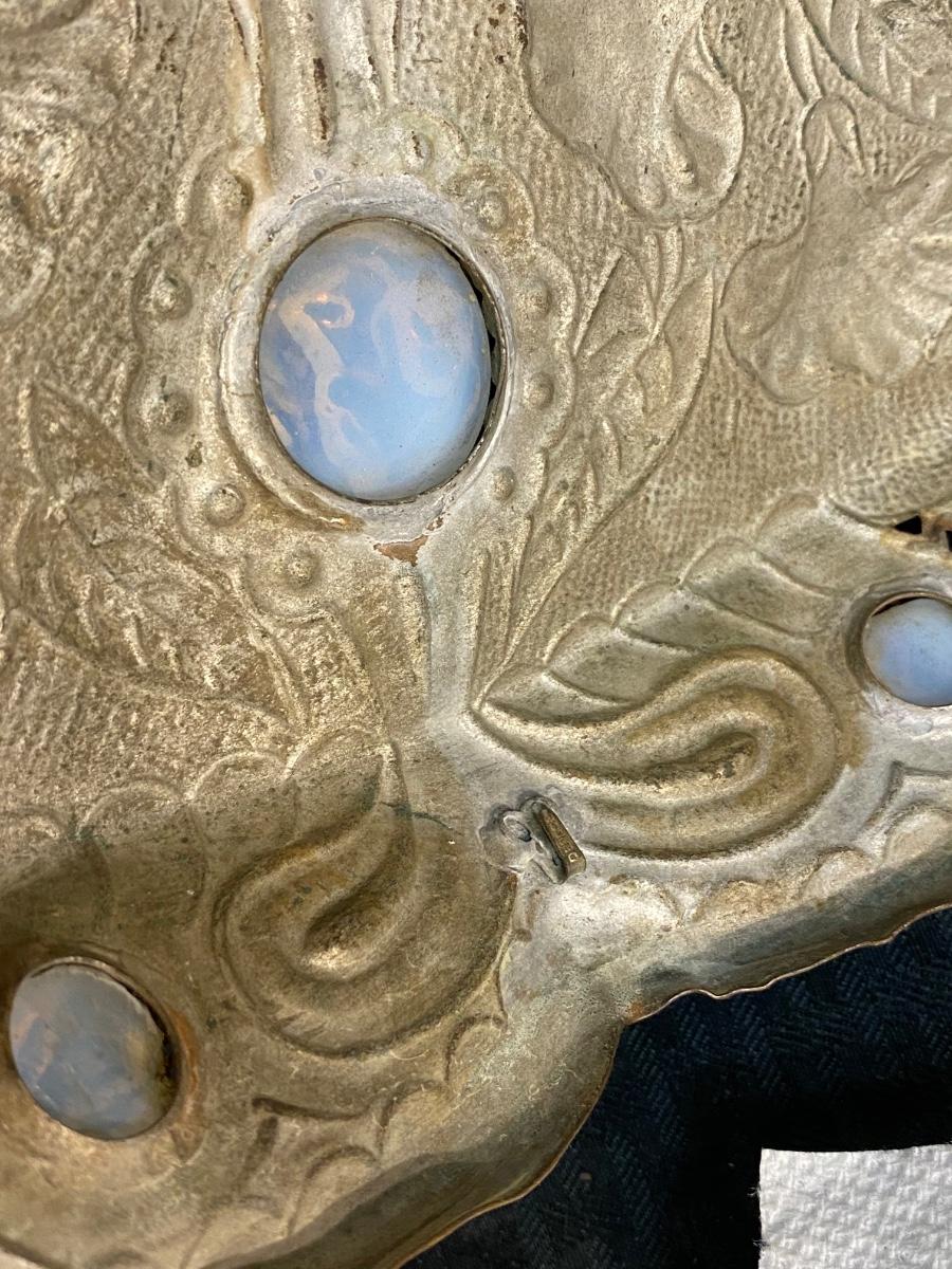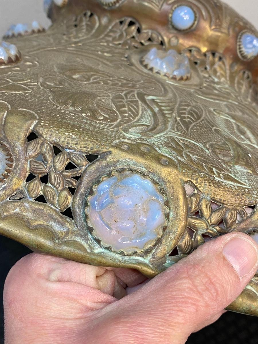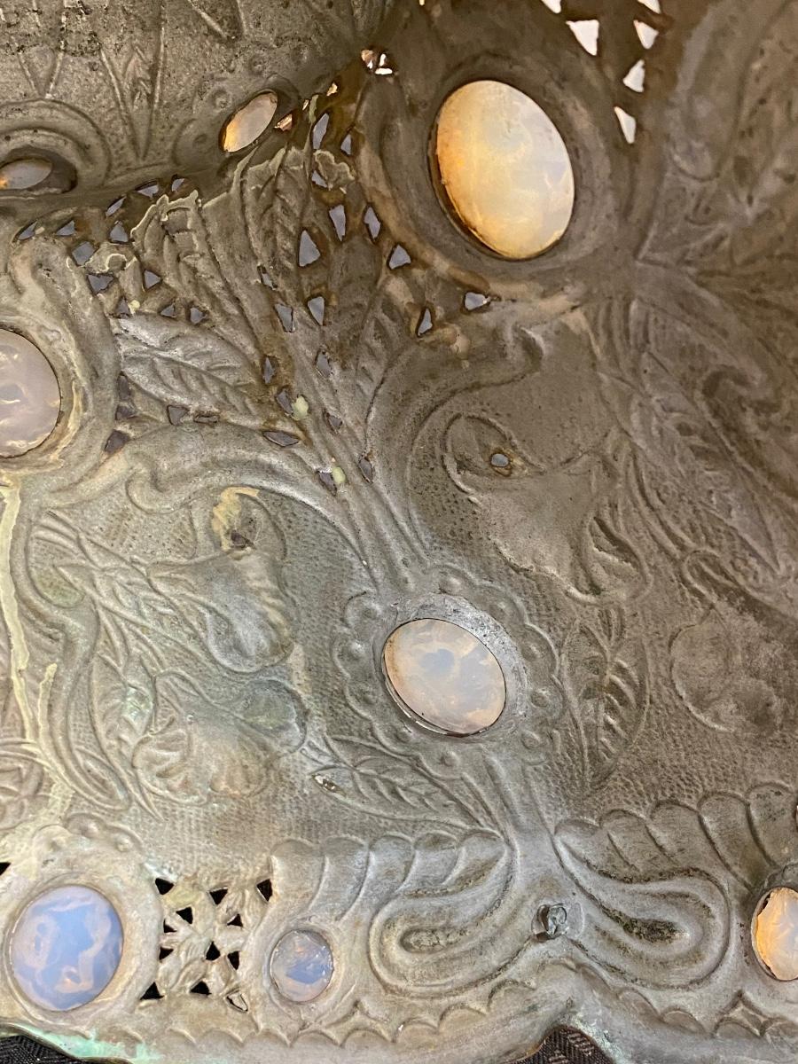 Vintage Antique Art Nouveau Deco Lamp Parts Embossed Stamped Iridescent Glass