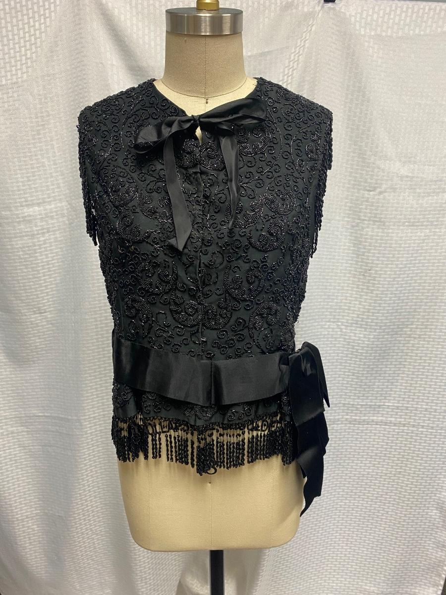 Vintage Antique Beaded Vest Bodice Top with Fringe