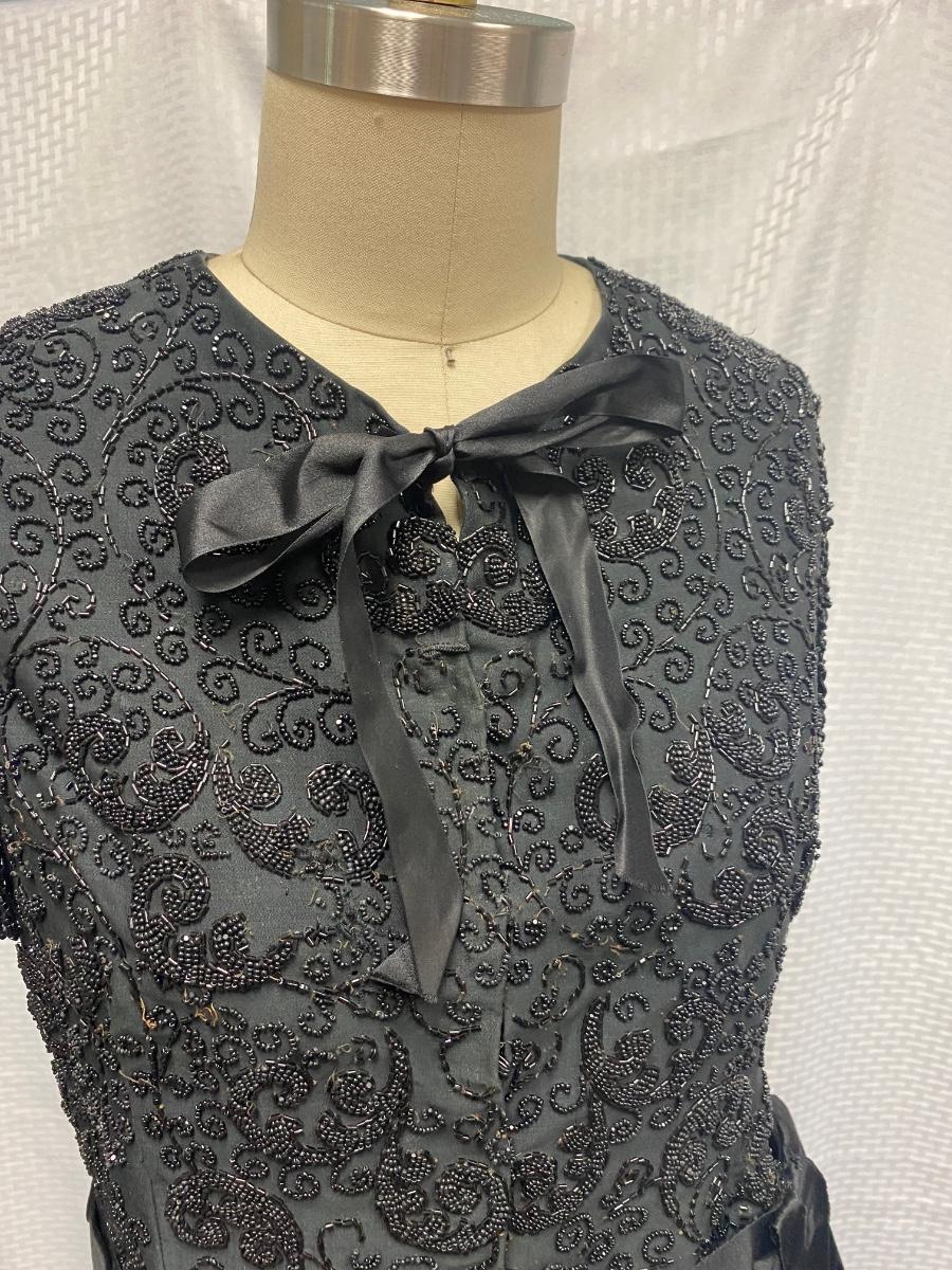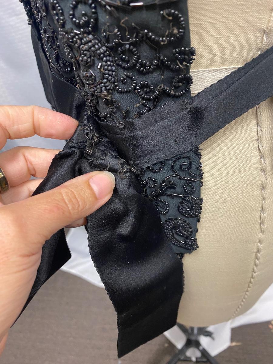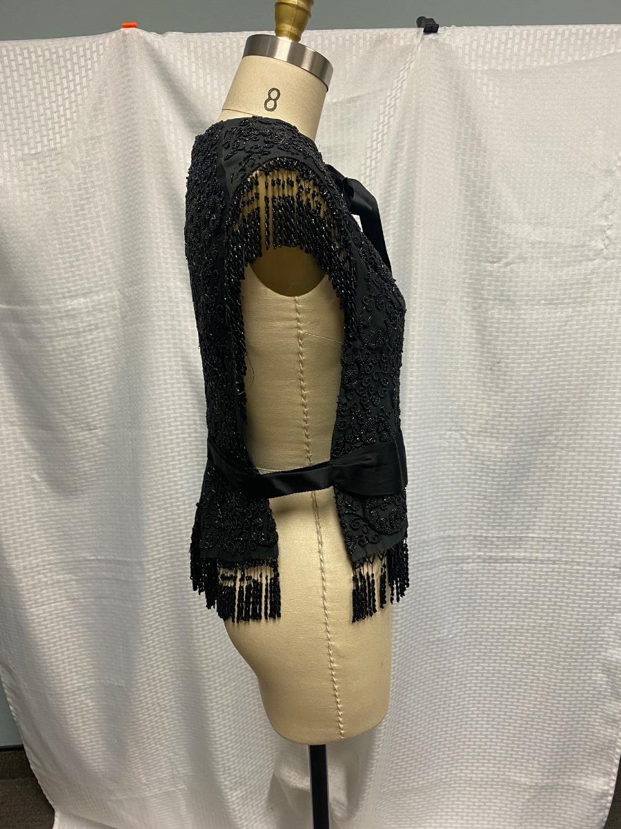 Vintage Antique Beaded Vest Bodice Top with Fringe. In good condition. Heavy from all the bead work. Some discolor from age and beads. Hook and eye closure with ribbon at the top. It is missing some fringed beads. Size 8 would maybe fit a 10.