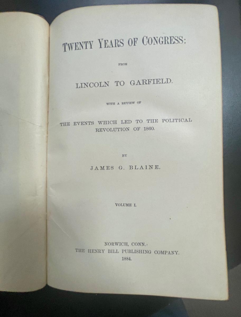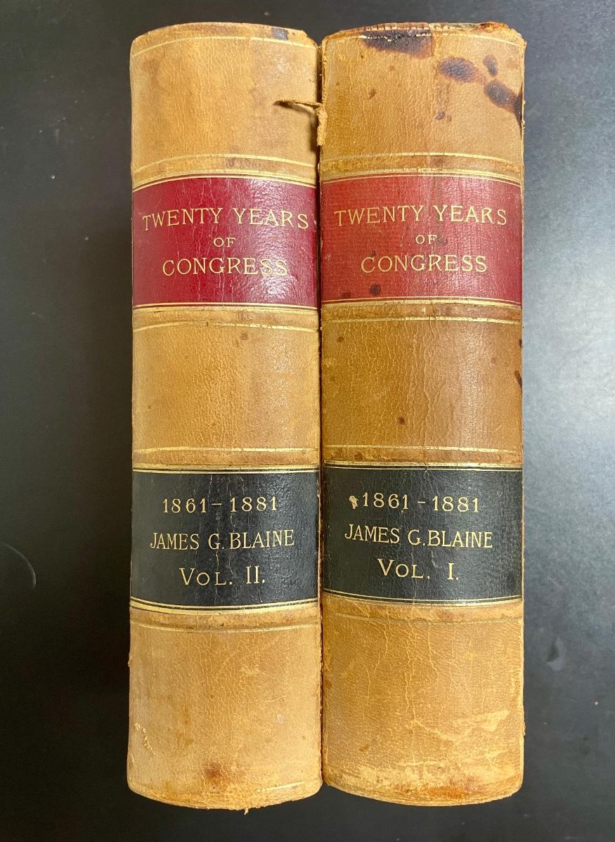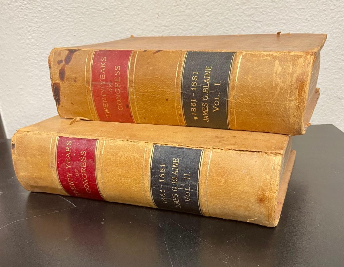 By James G Blaine in 1884. Original volumes, some spine damage but not much else for a pair of books that are approx. 149 years old. Amazing, fascinating look at people and events with our congress from 1861-1881, during the presidencies of Lincoln, Johnson, Hayes, Grant and Garfield.
