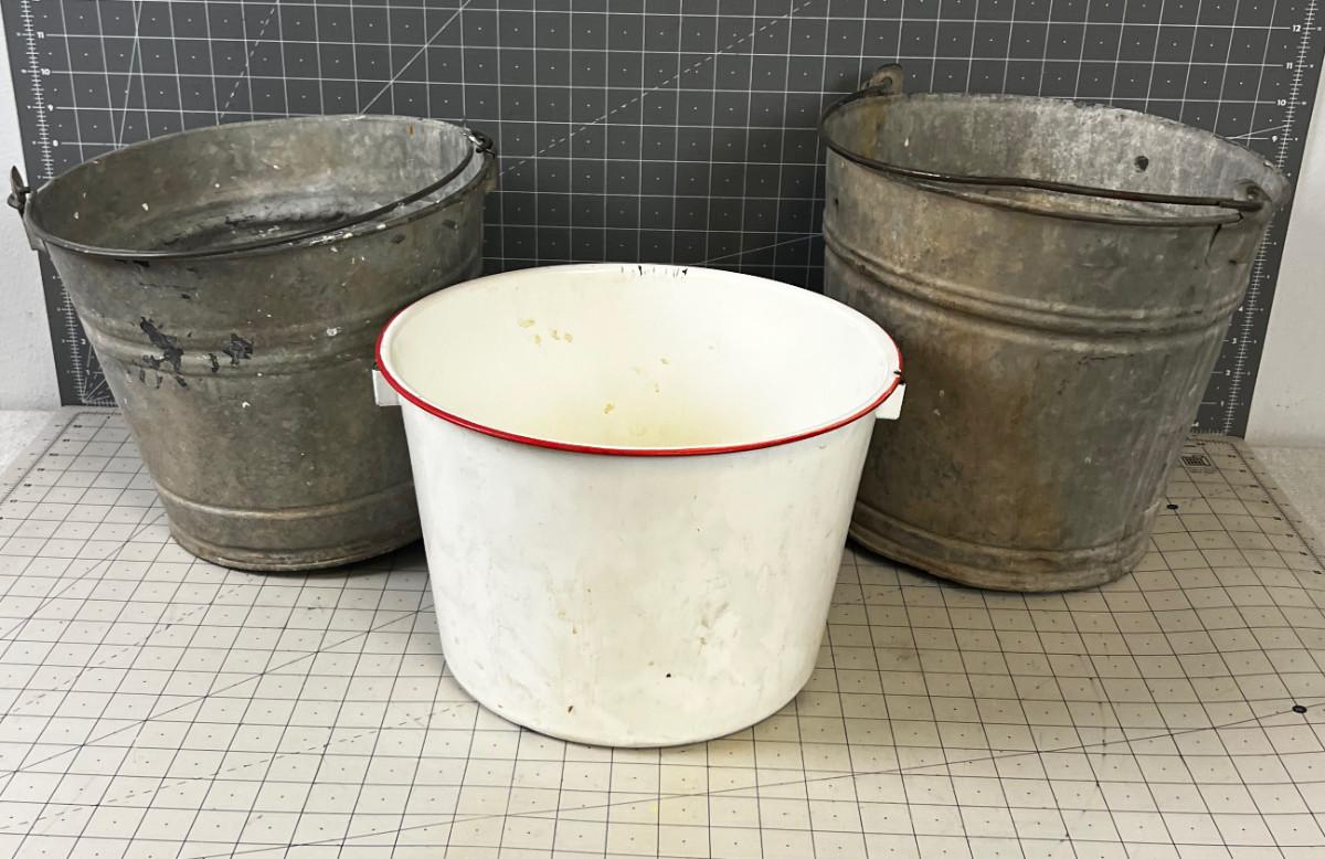 1 Enamel and 2 Galvanized - Used. They are good old fashioned buckets, the end!