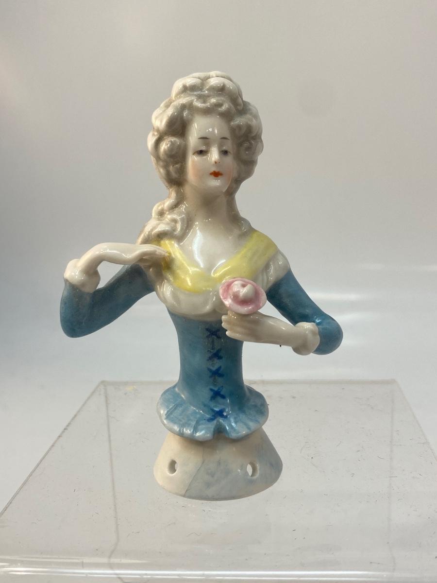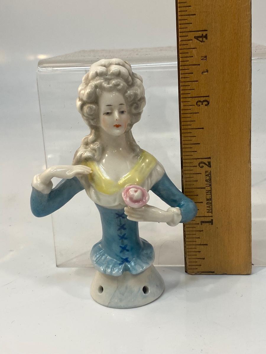 Vintage Antique Ceramic Victorian Lady with Flower Pincushion Half Doll