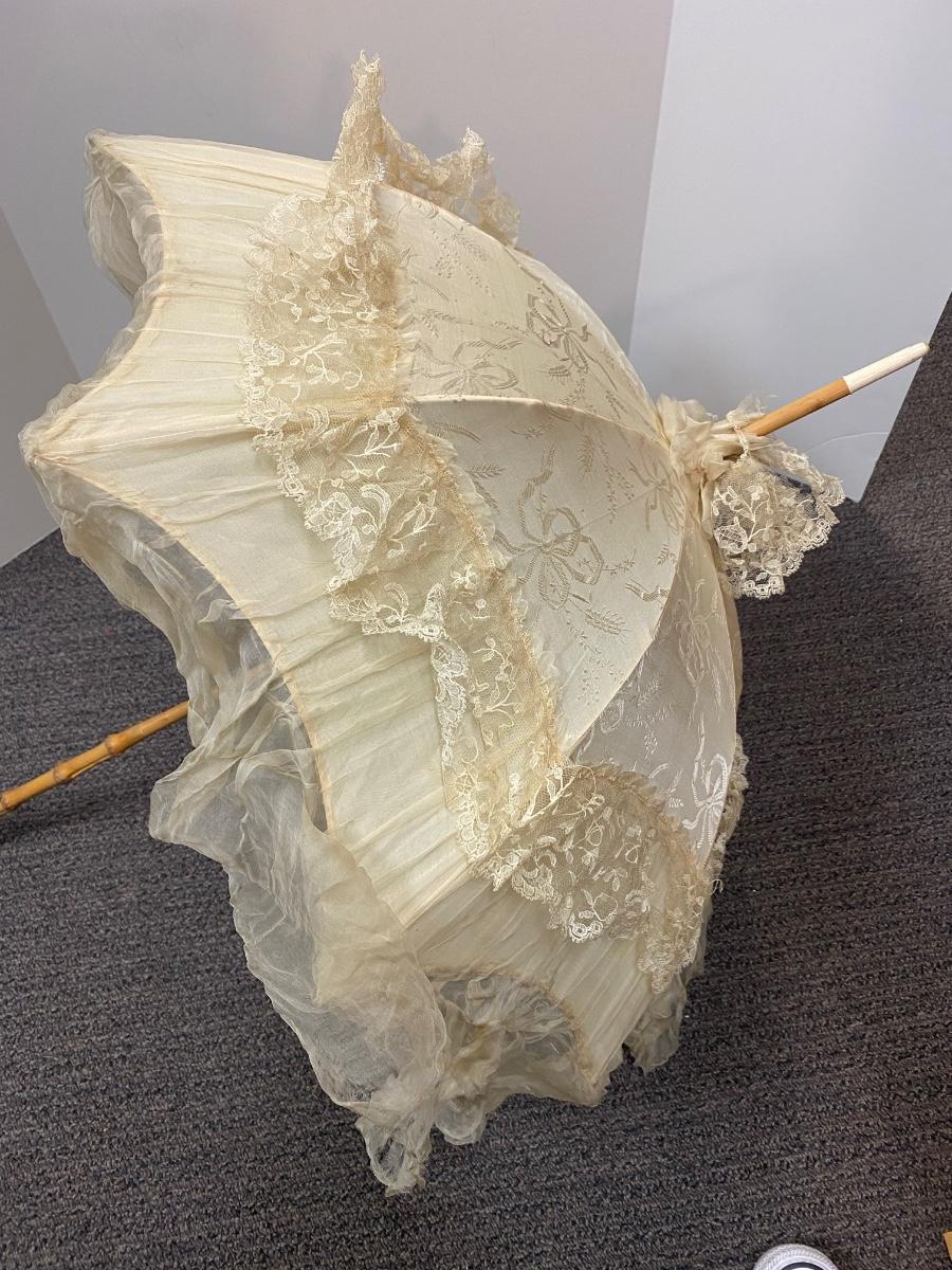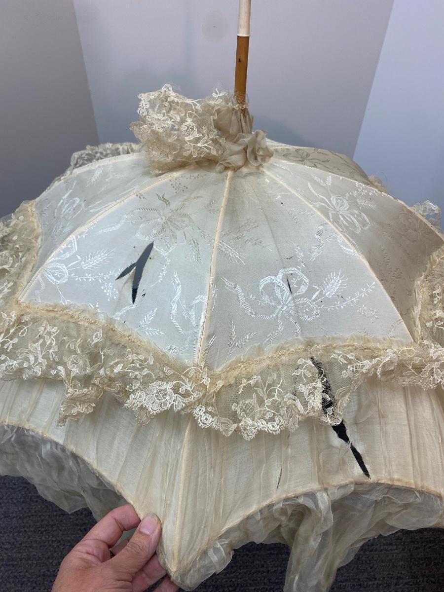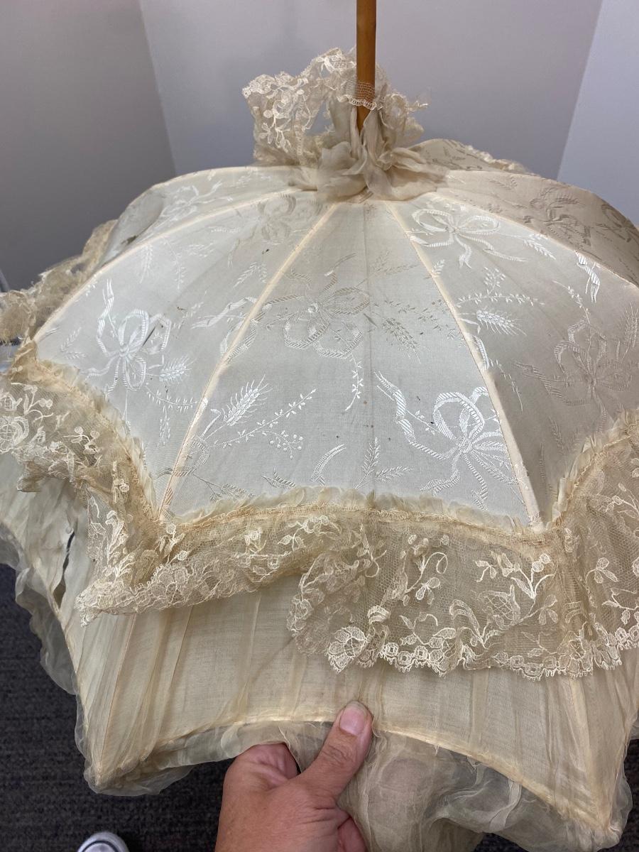 Vintage Antique Cotton & Lace Parasol Umbrella