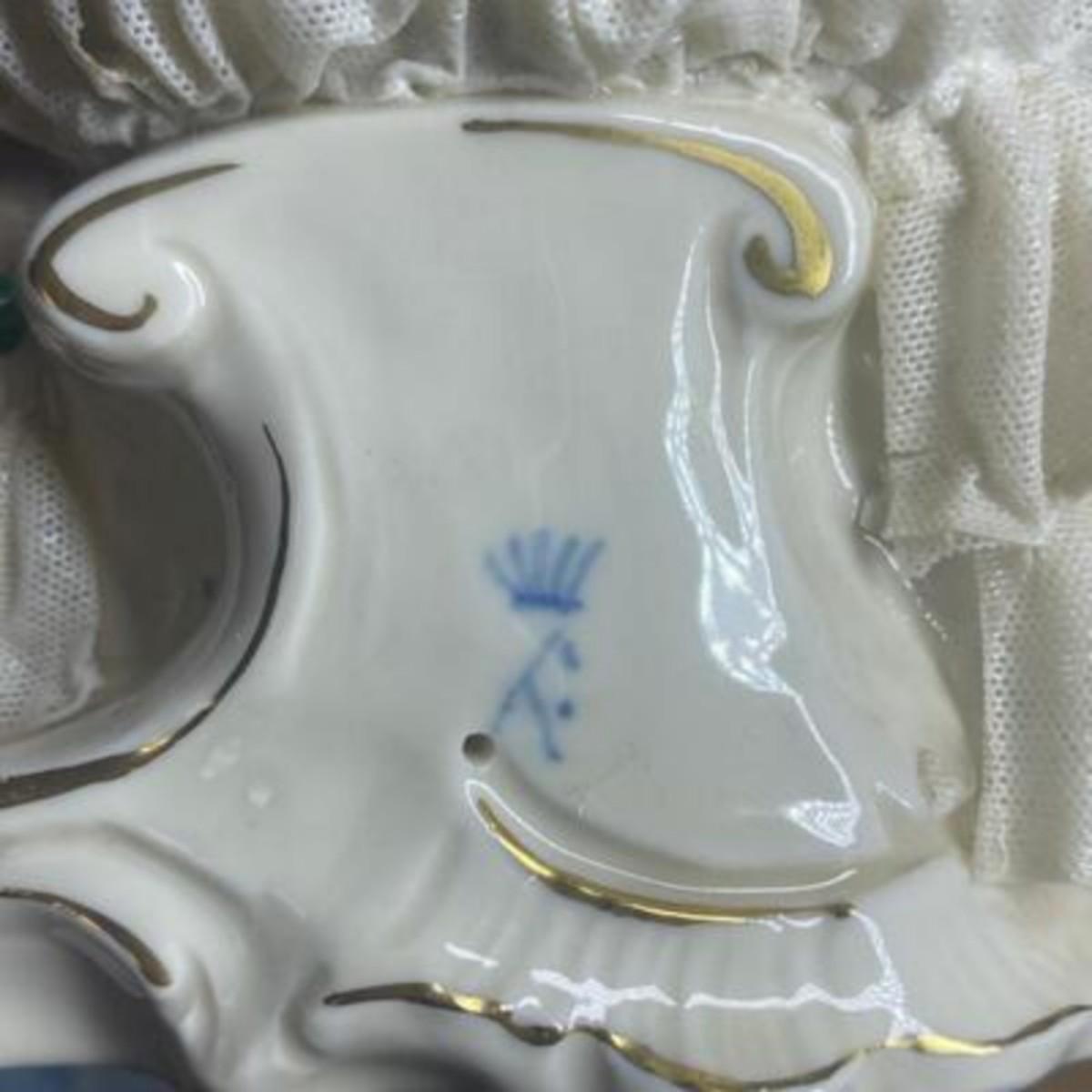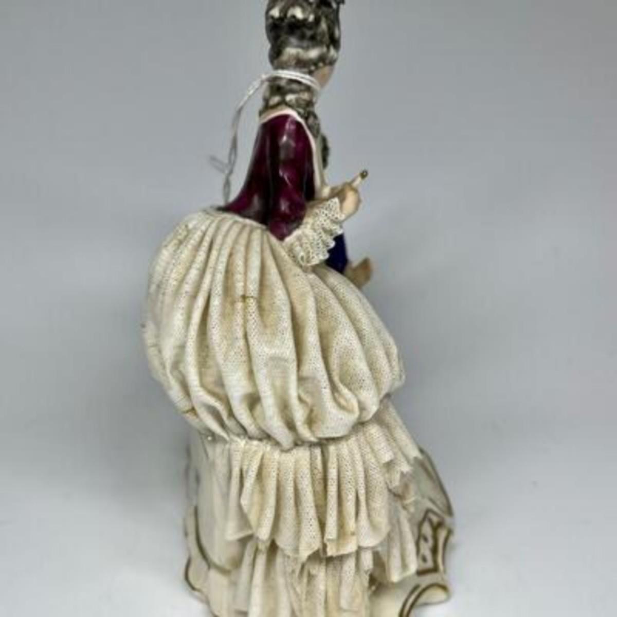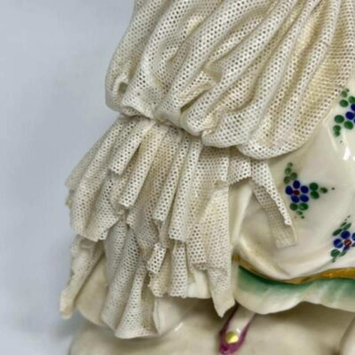 Vintage Antique Dresden Style Porcelain Lace French Man & Woman Lovers Courting Couple Figurine. Marked on the backside of figurine. There are some minor chips to the lace but go unnoticed unless inspected, displays well.