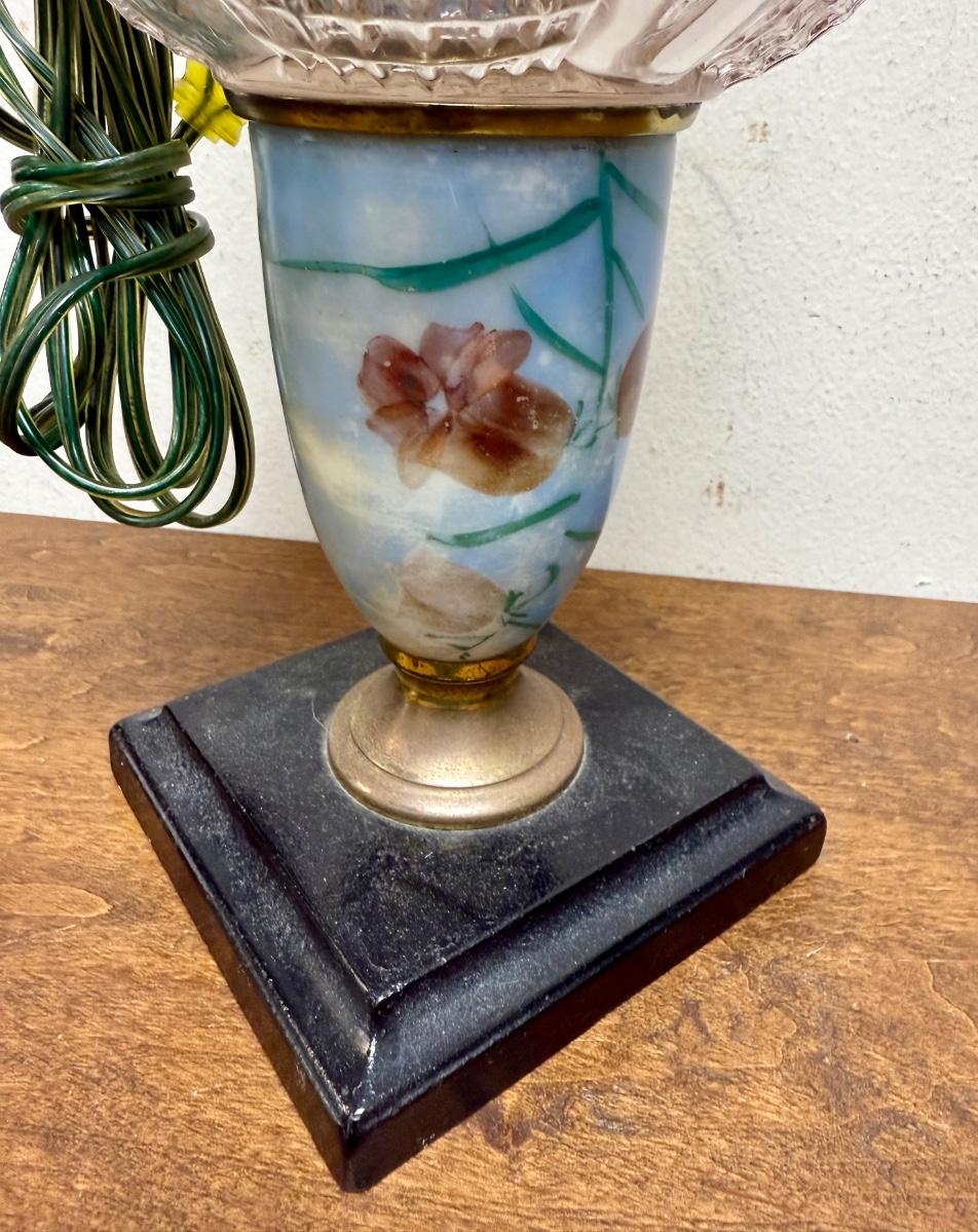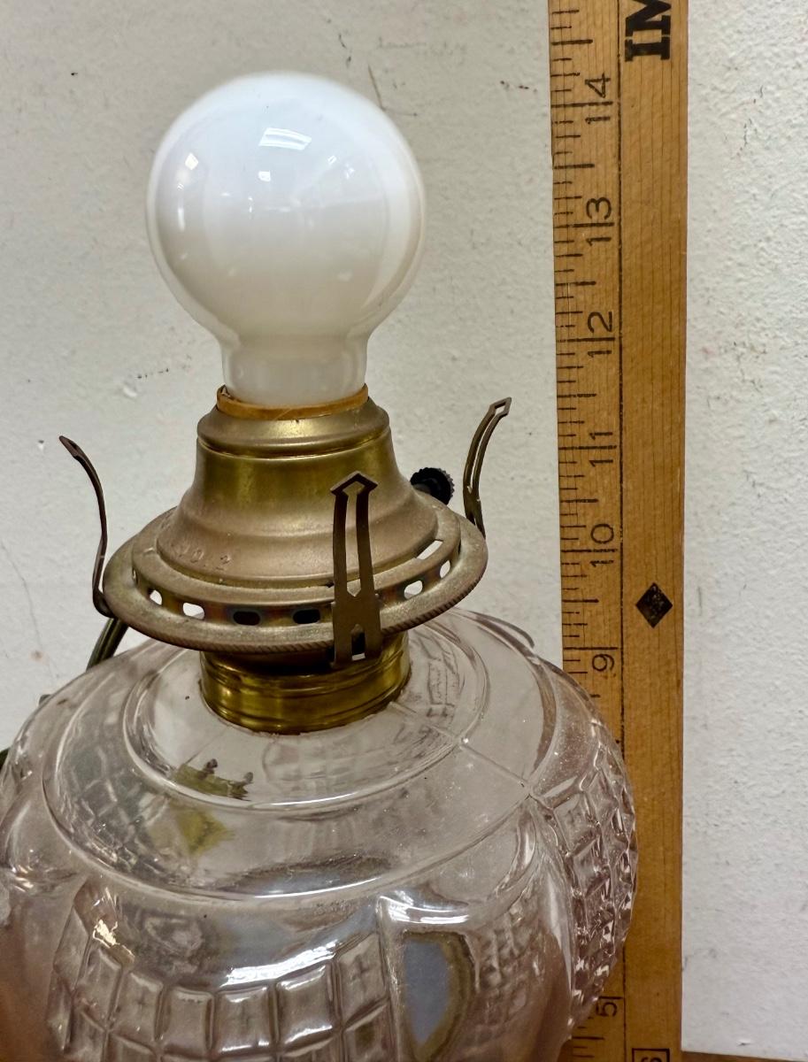 Approx. 14" tall. Tested, works as expected. Antique Electrified Oil Lamp - Asian Inspired - Cast Iron Base - Oil Burning Lamp - Early 1900s - Victorian Lamp - Hurricane Lamp.