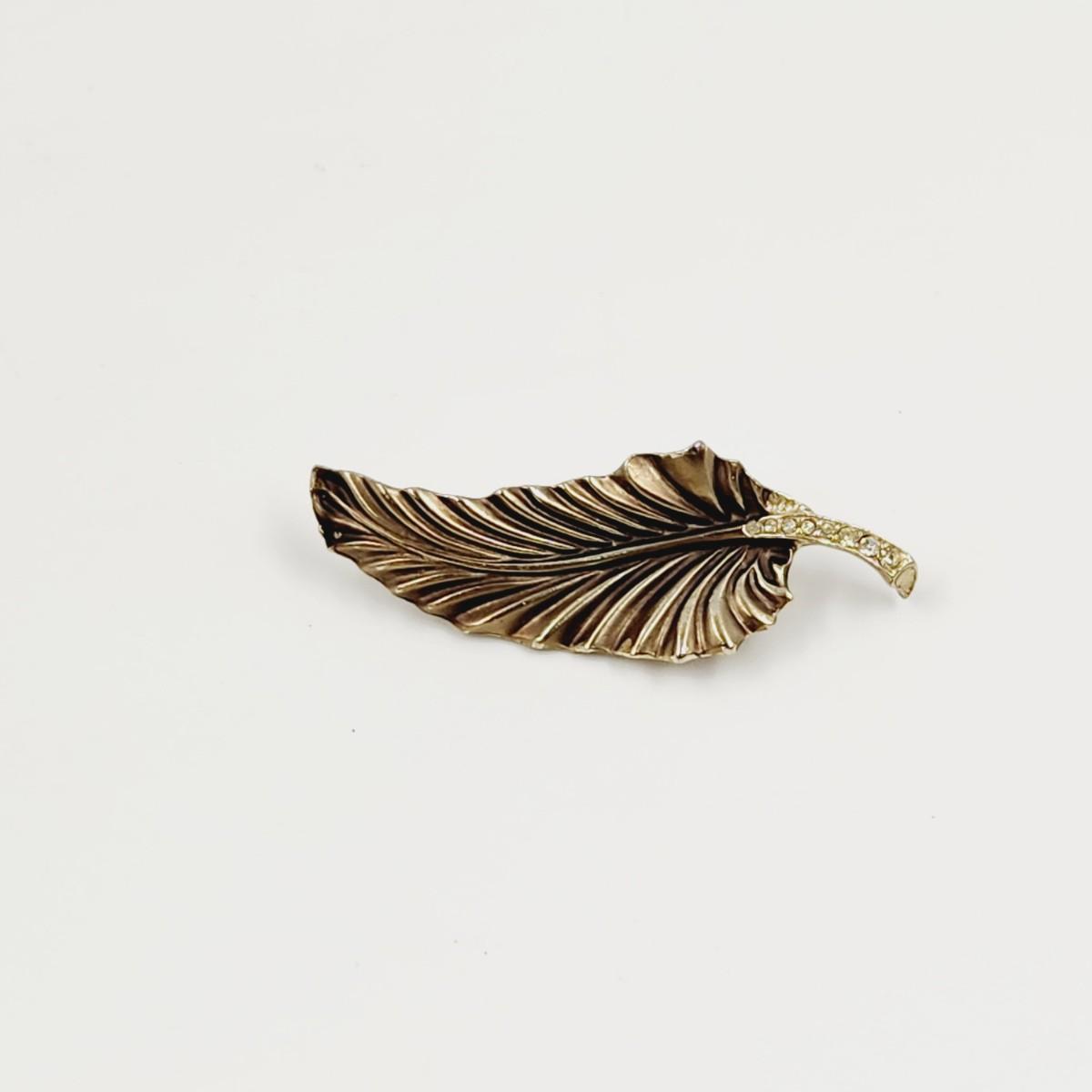 VINTAGE ANTIQUE FINISH LEAF W/ GLASS ACCENTS BROOCH