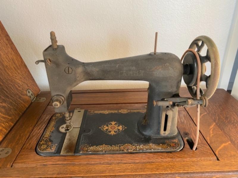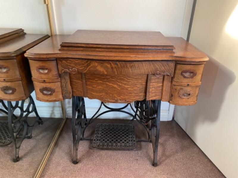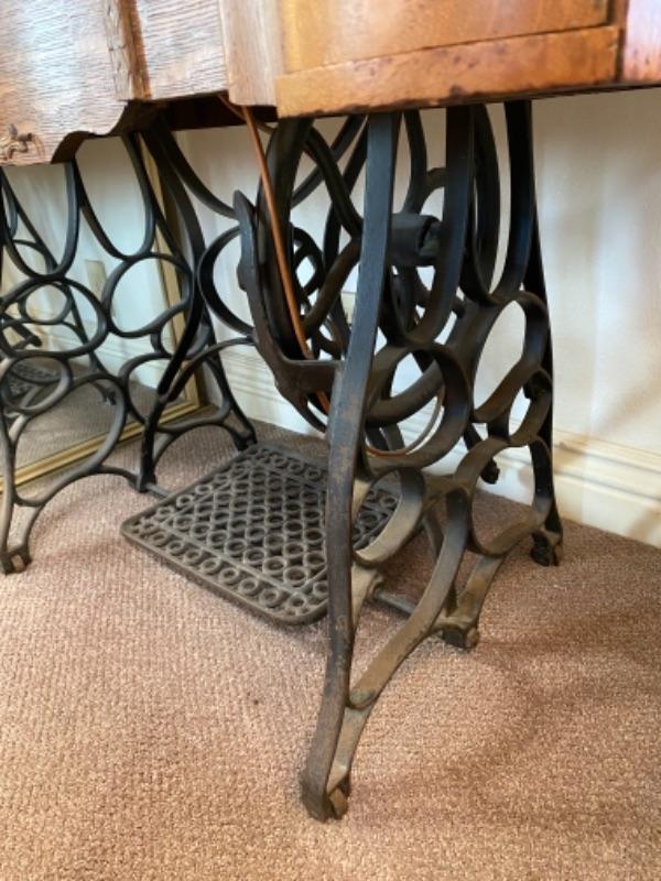 Vintage Antique Foot Pedal Treadle Sewing Table with Machine