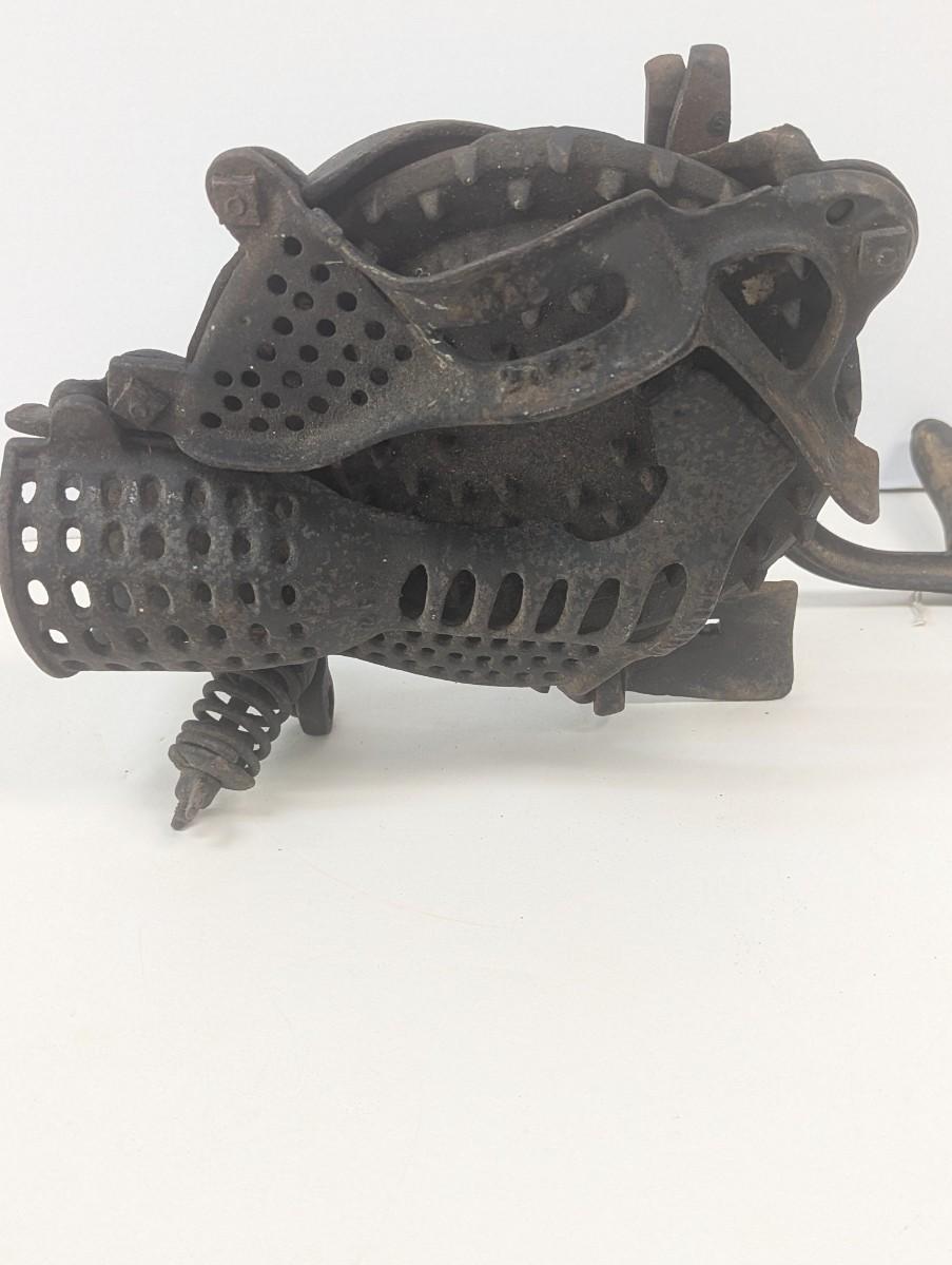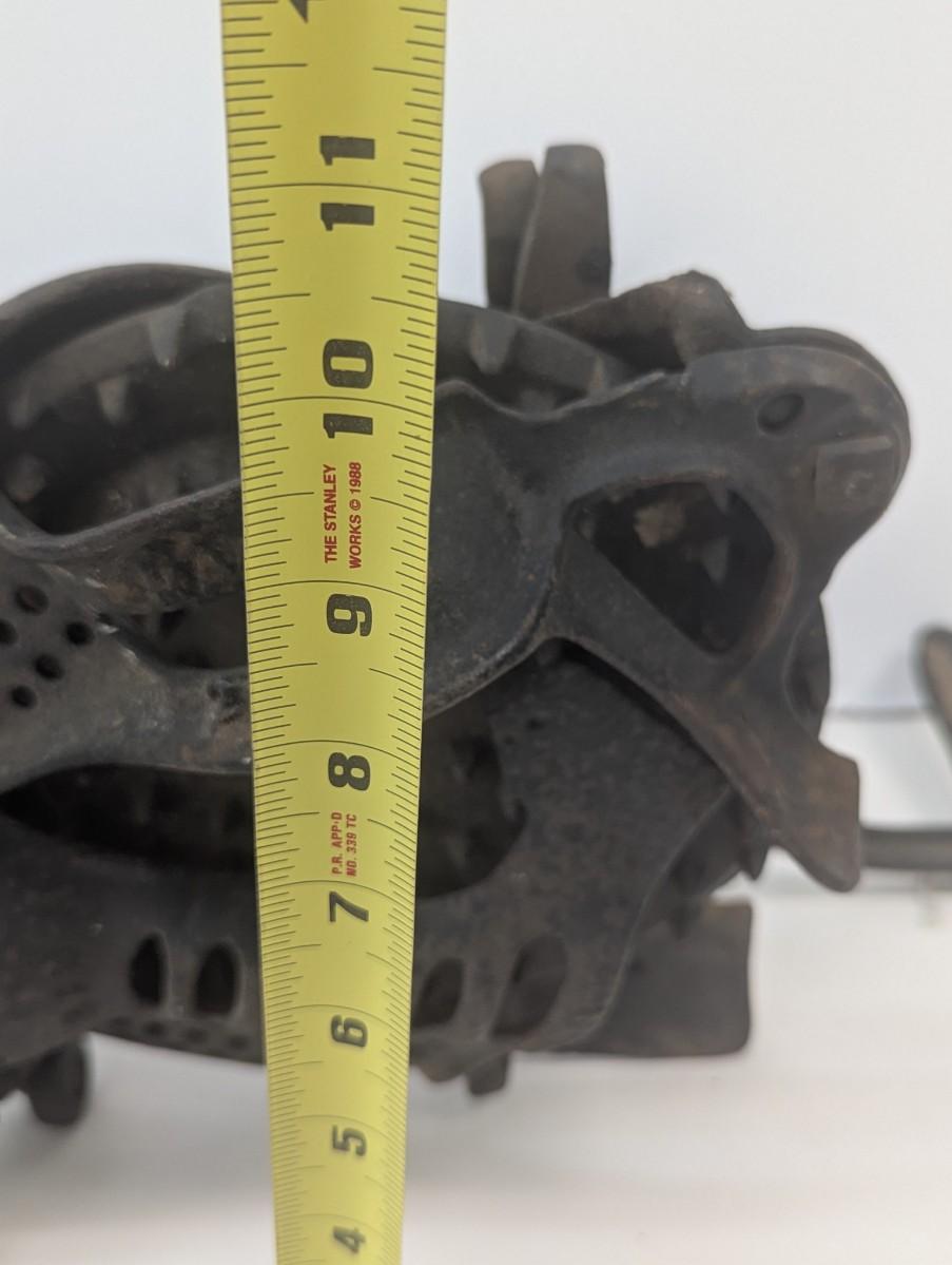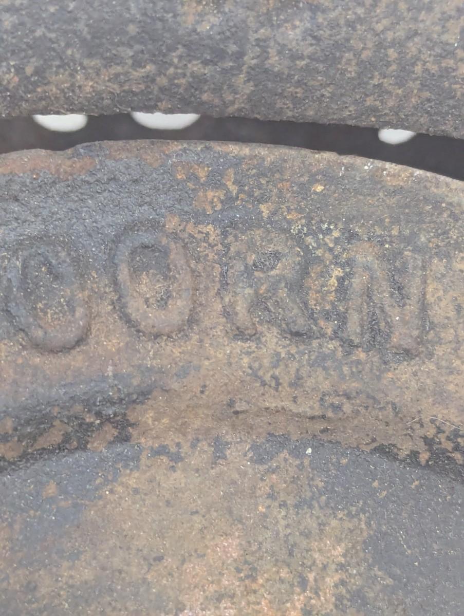 This Untested Fulton vintage corn sheller is a rare find for collectors and enthusiasts alike- It is a pre-owned corn sheller with normal rustier and scratches wear as it would be expected for its age. Made of durable cast iron, this sheller is a testament to the quality of agricultural equipment of its time. The dark brown color and intricate details add to its charm and make it a great addition to any garden or antique collection.