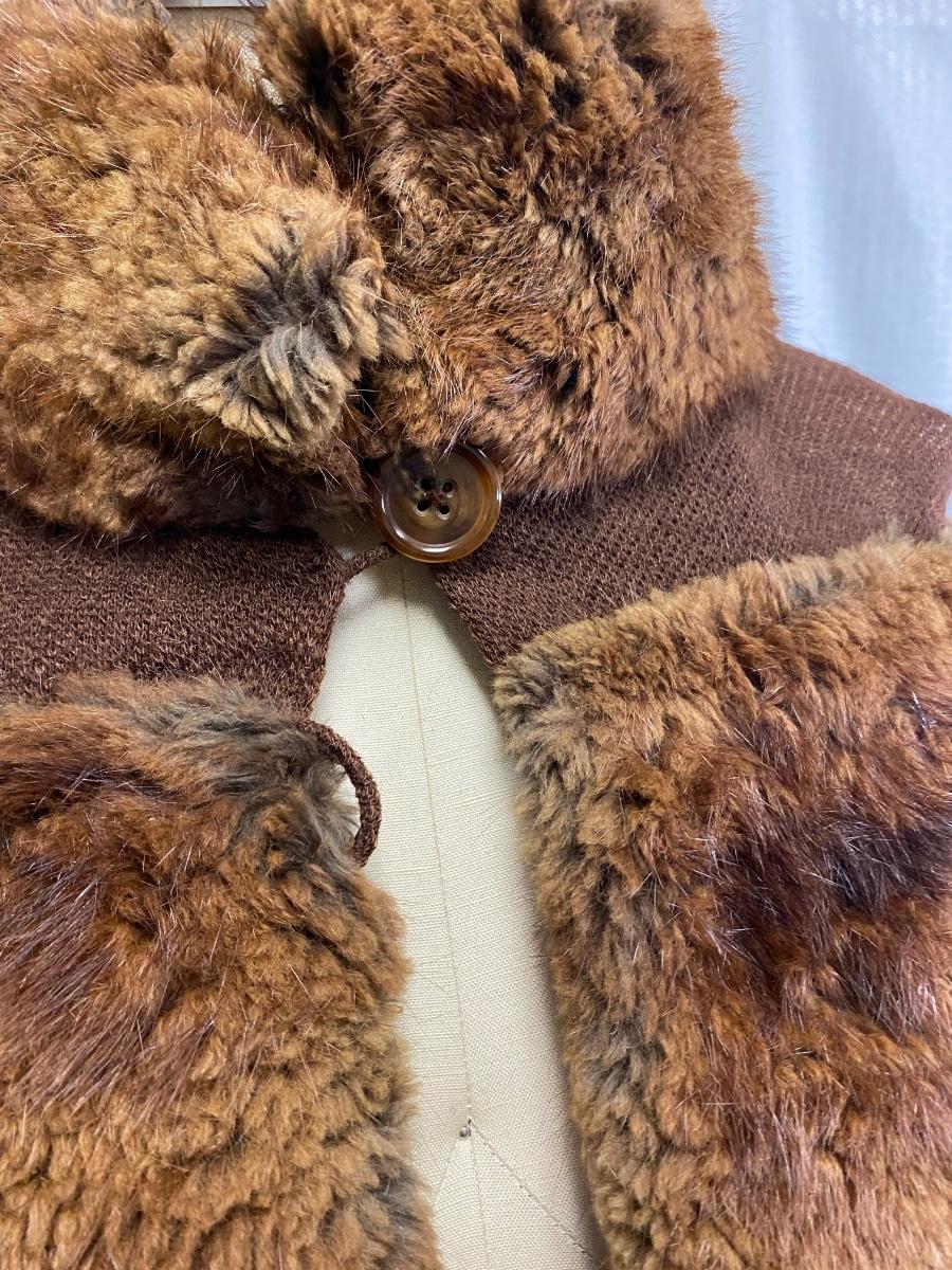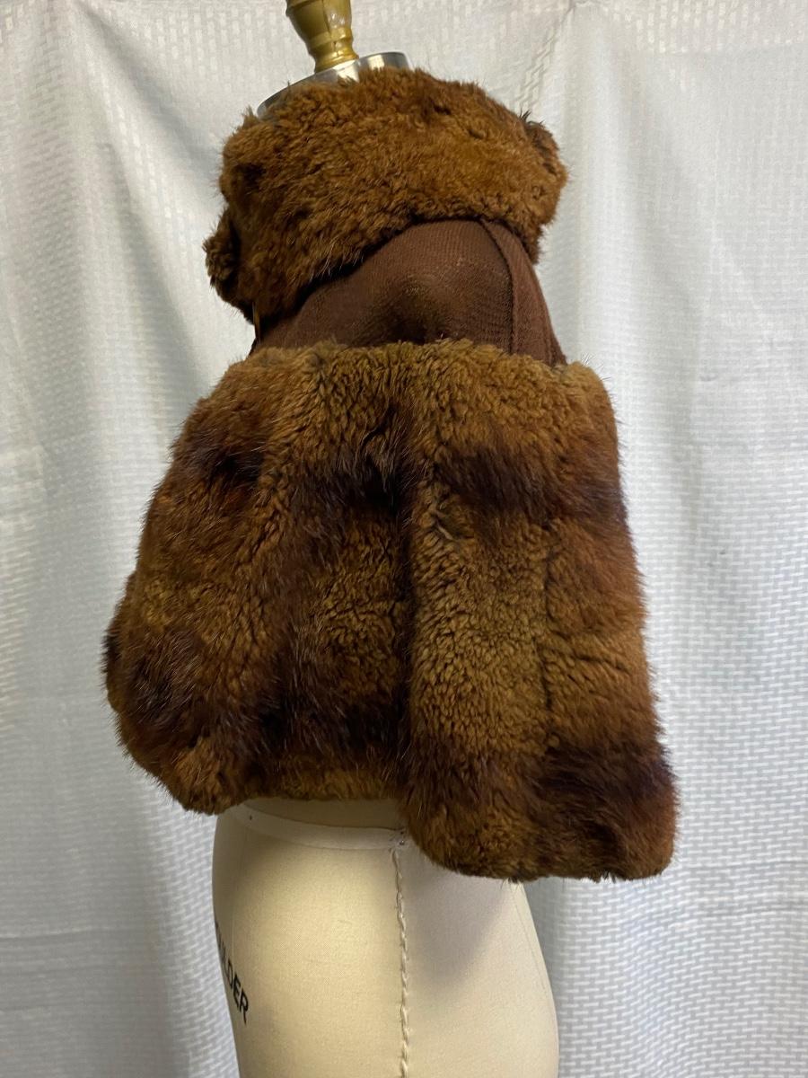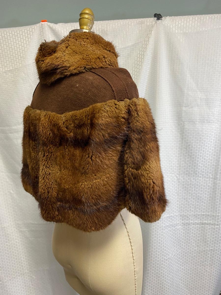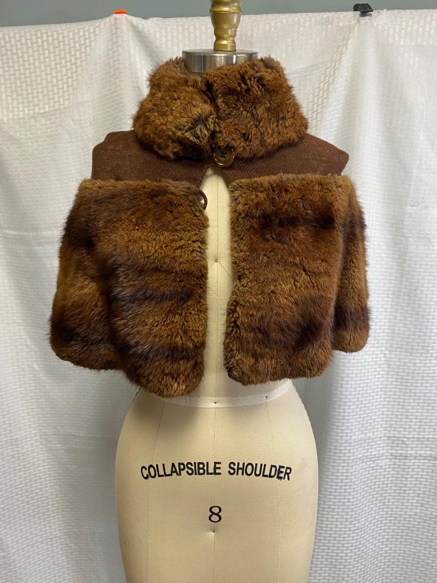 Vintage Antique Fur and Wool Shoulder Wrap Cape Buttoned Shawl