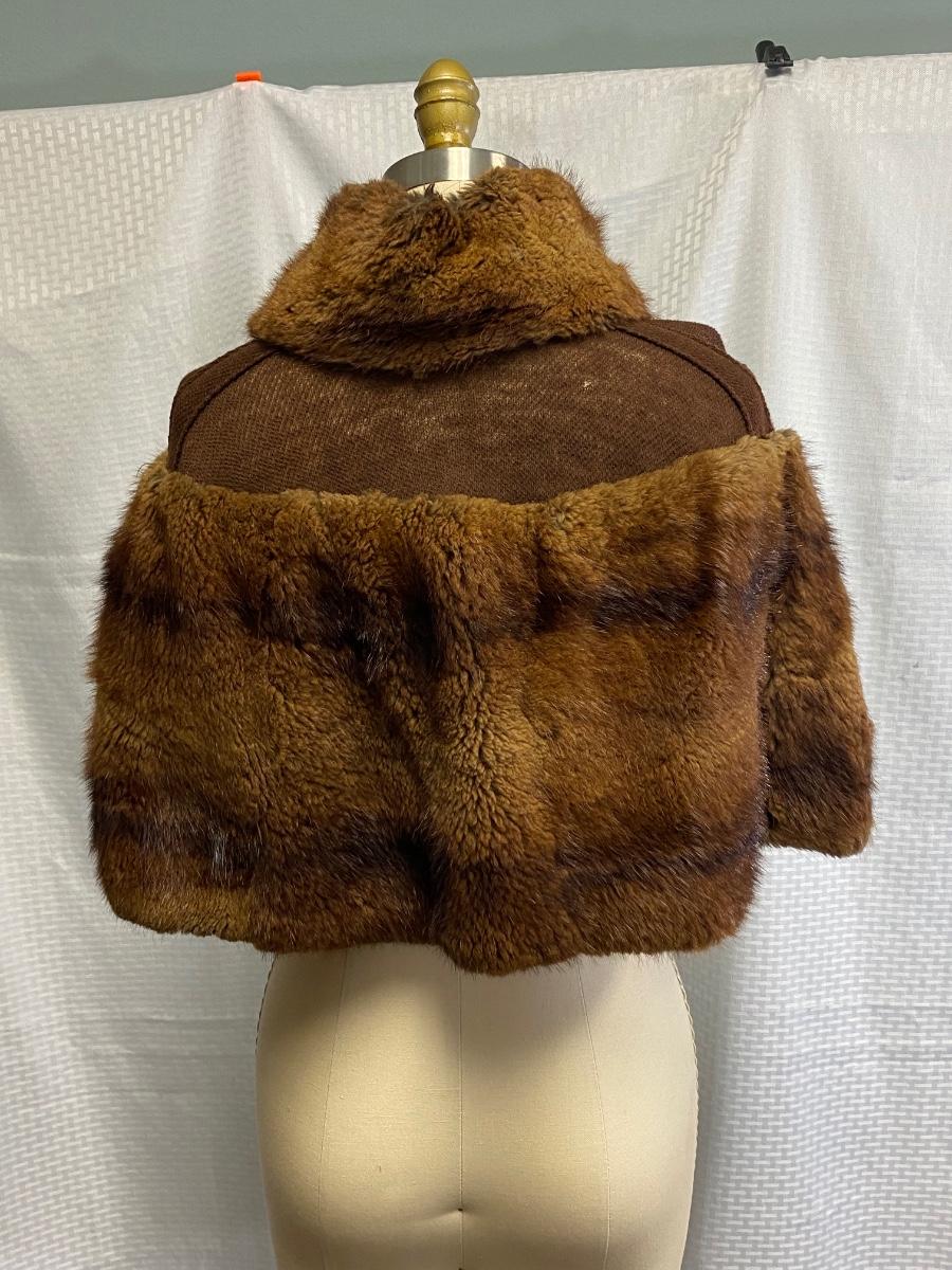 Vintage Antique Fur and Wool Shoulder Wrap Cape Buttoned Shawl. In good antique condition. The wool is a little thin in places from age and it does have small moth holes. Real fur, in vintage condition, needs to be cleaned. Had one button closure but has loops for two buttons.