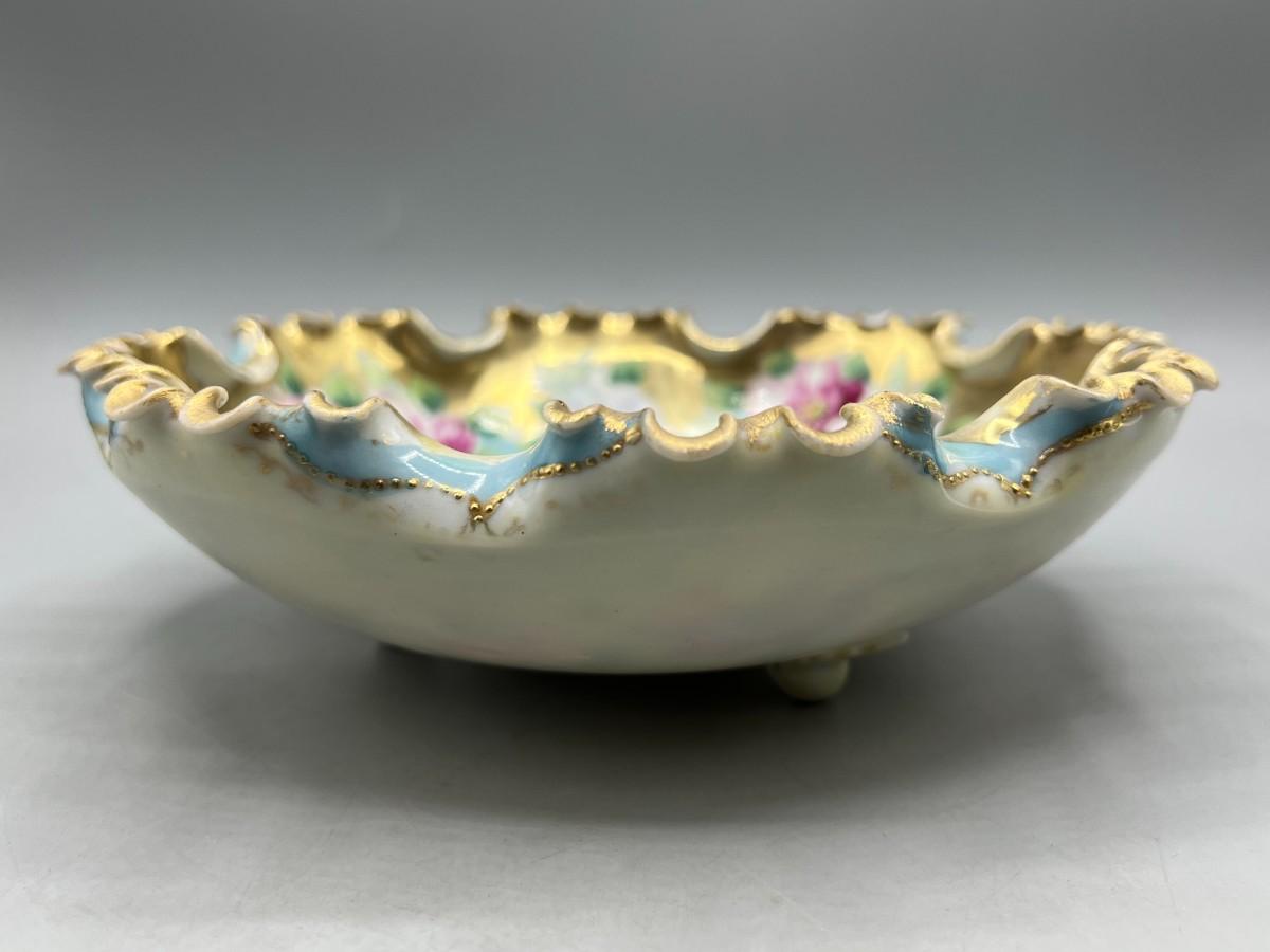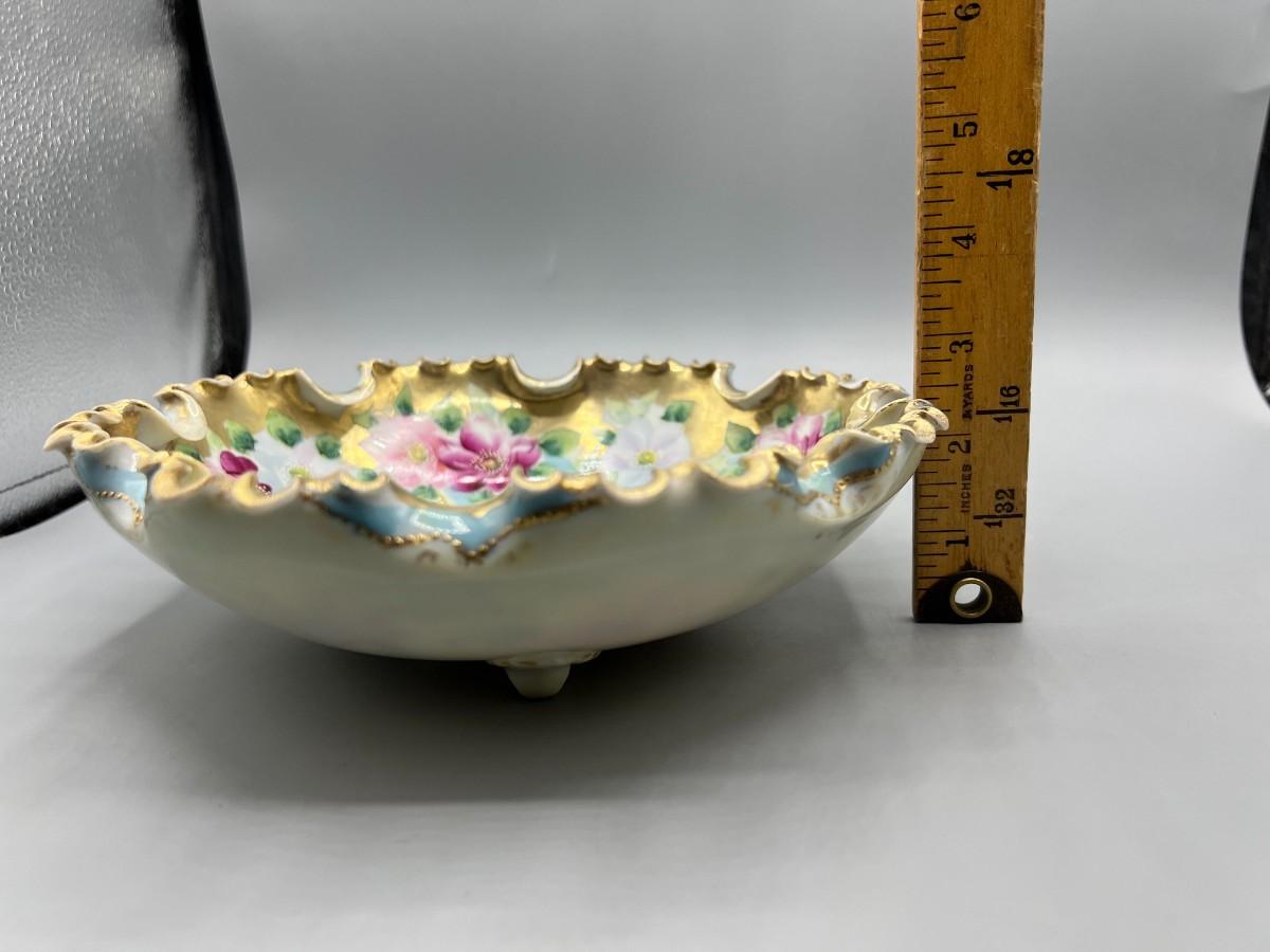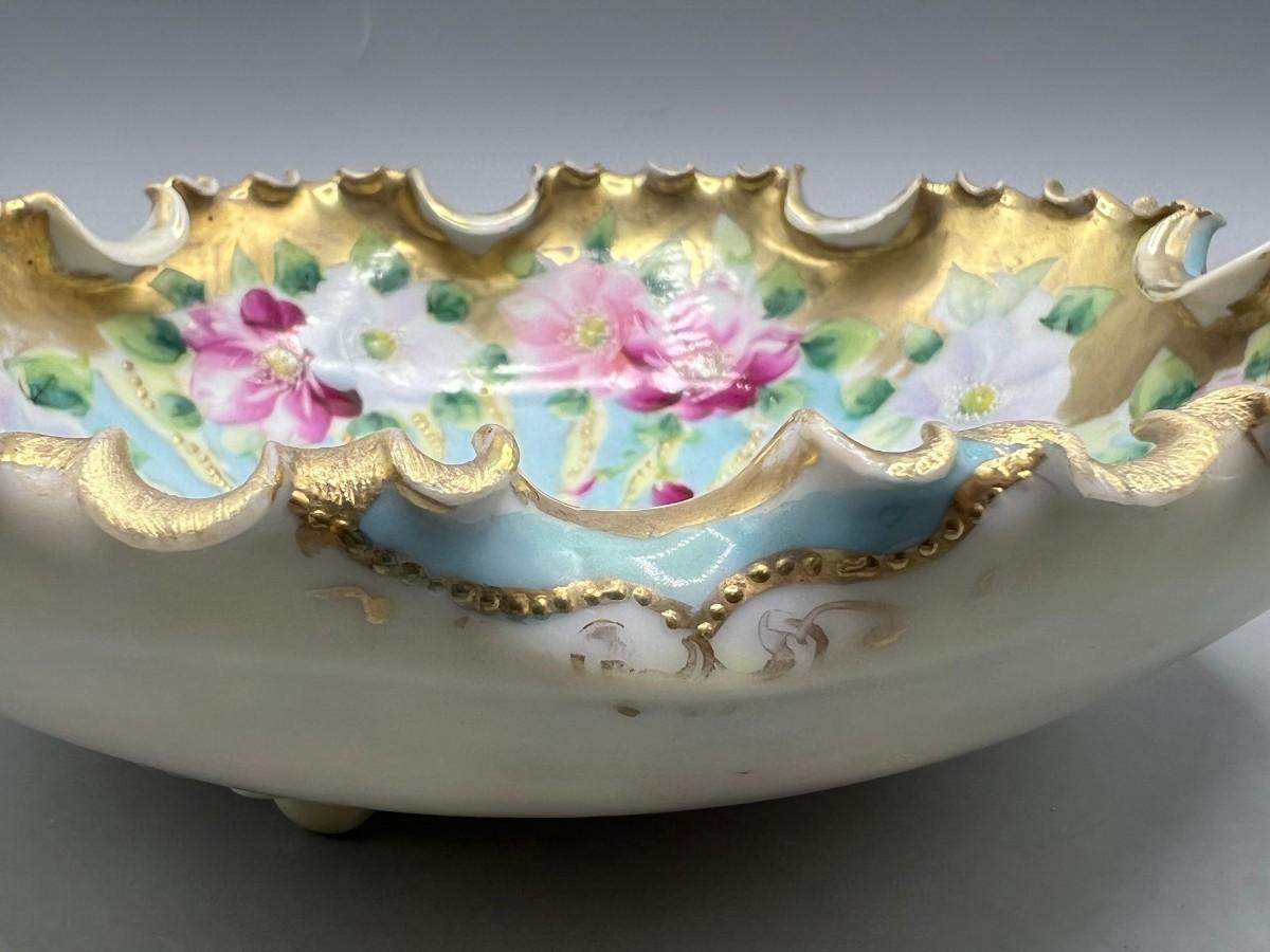 Vintage Antique Gold Gilt Edge Floral Porcelain Footed Serving Bowl