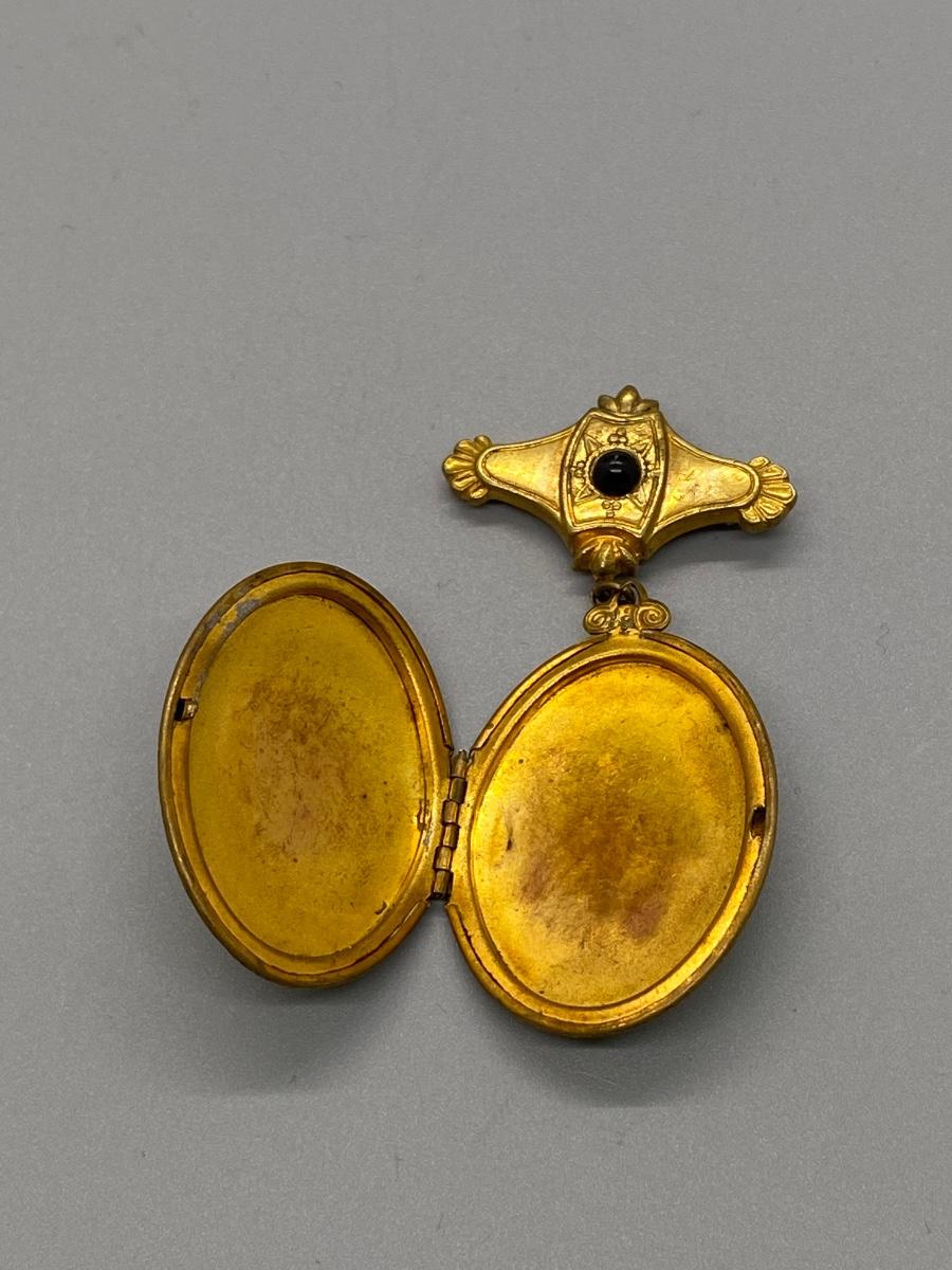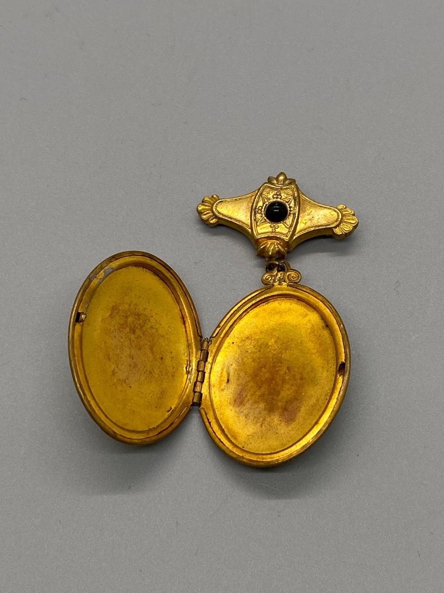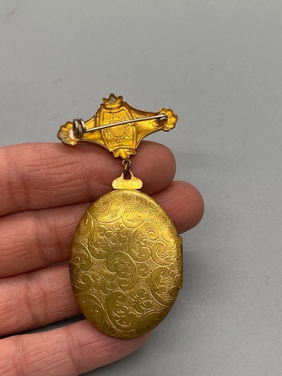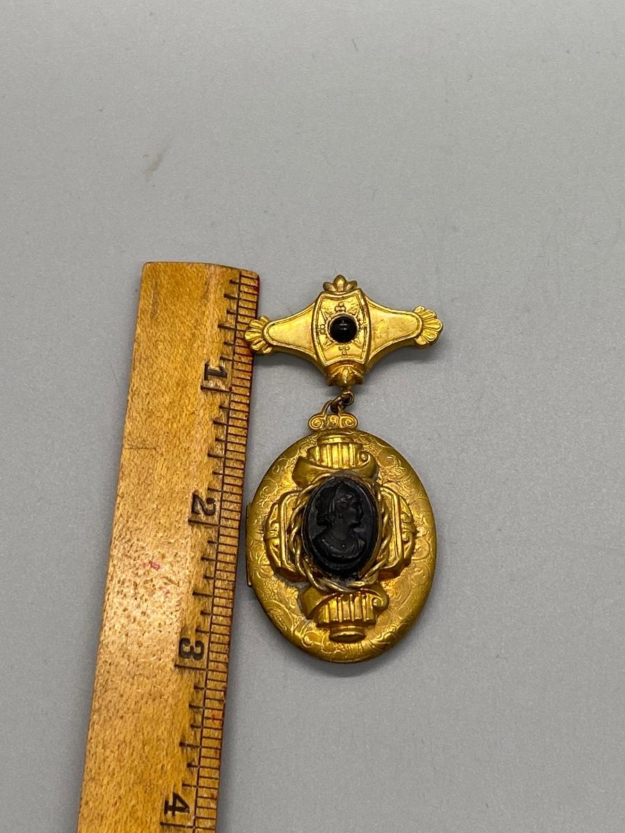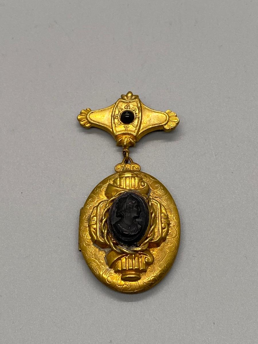 Vintage Antique Gold Tone Cameo Locket Brooch Pin
