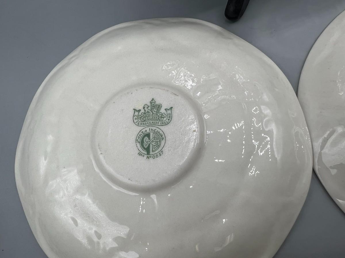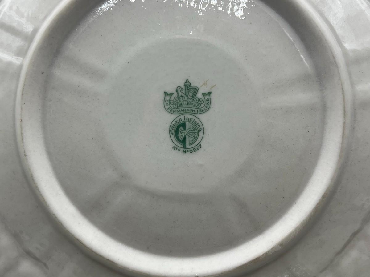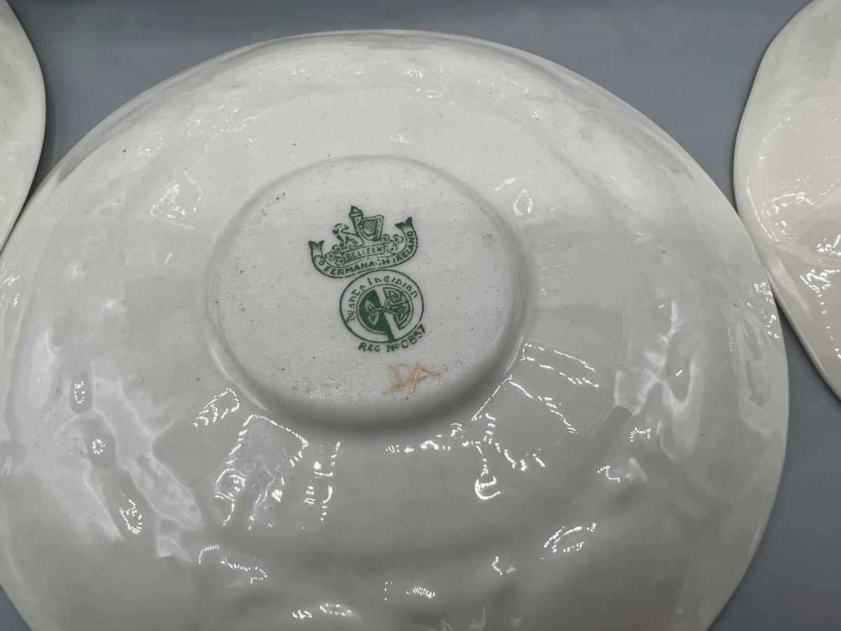 Vintage Antique Green Label Belleek Saucers & Serving Plate