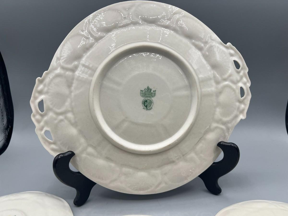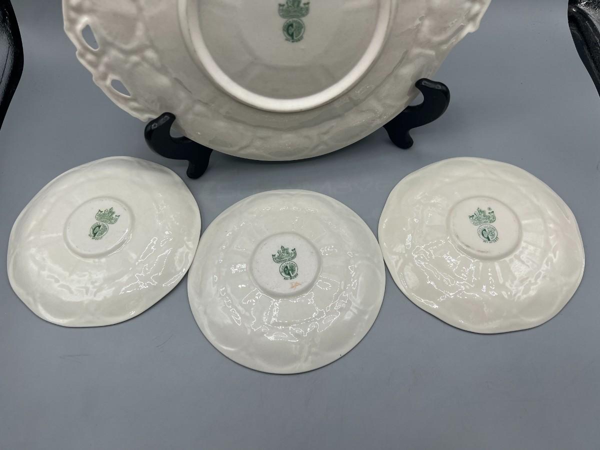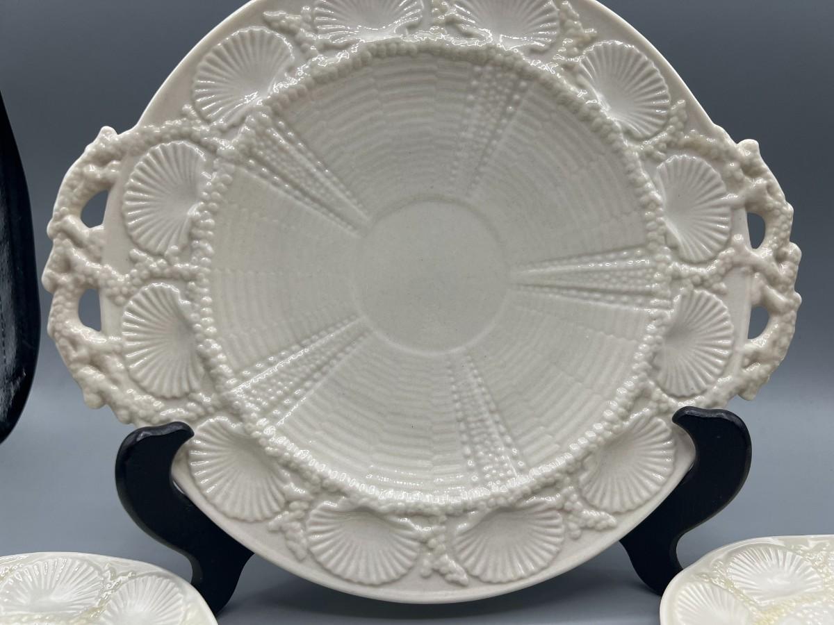 Vintage Antique Green Label Belleek Saucers & Serving Plate