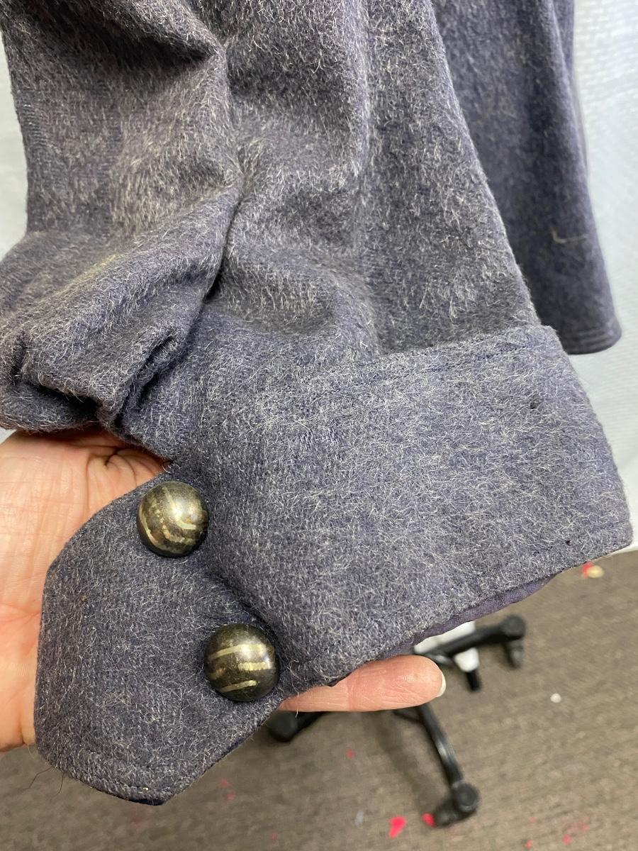 Vintage Antique Heavy Grey Blue Wool Fitted Coat Jacket
