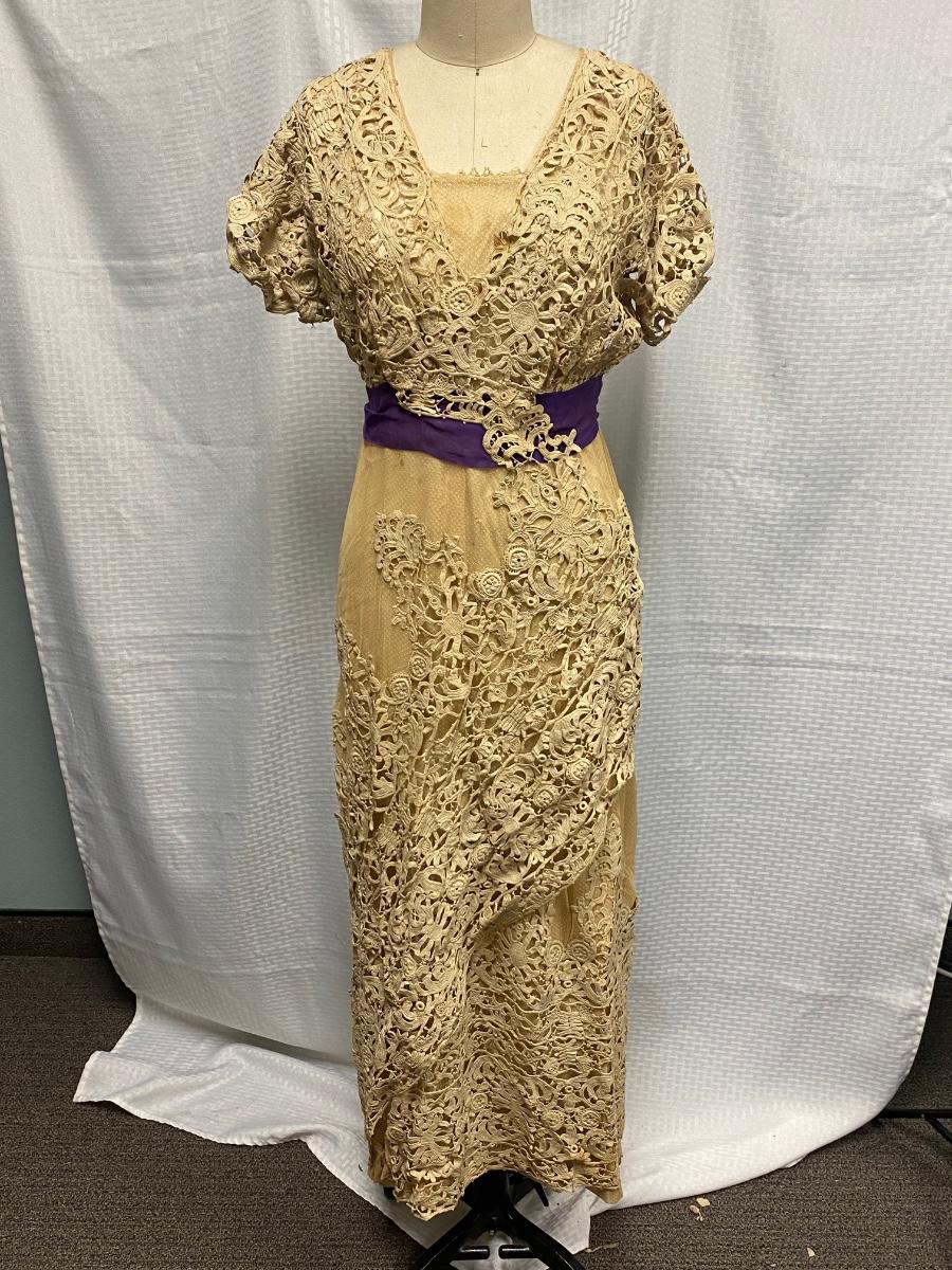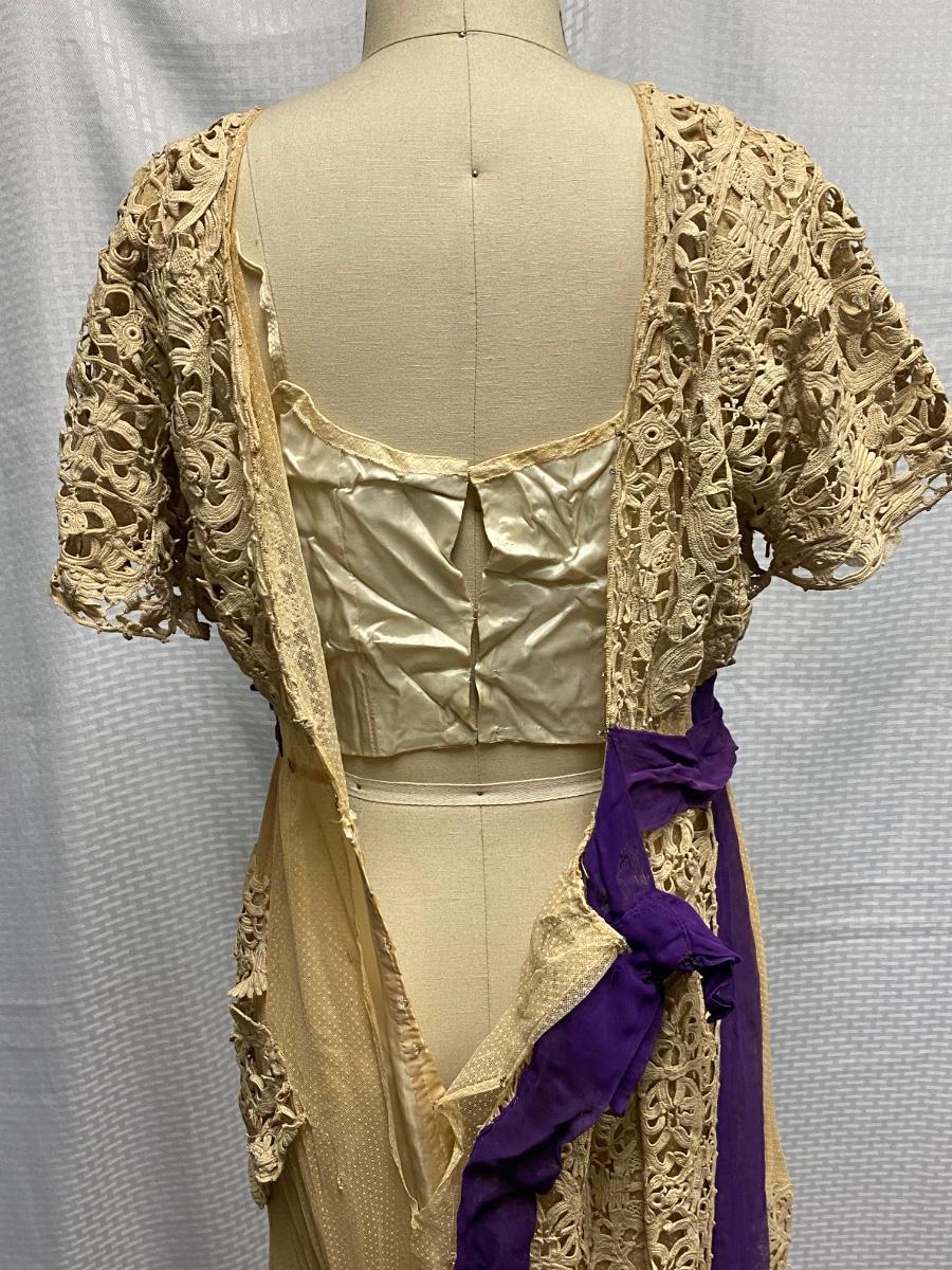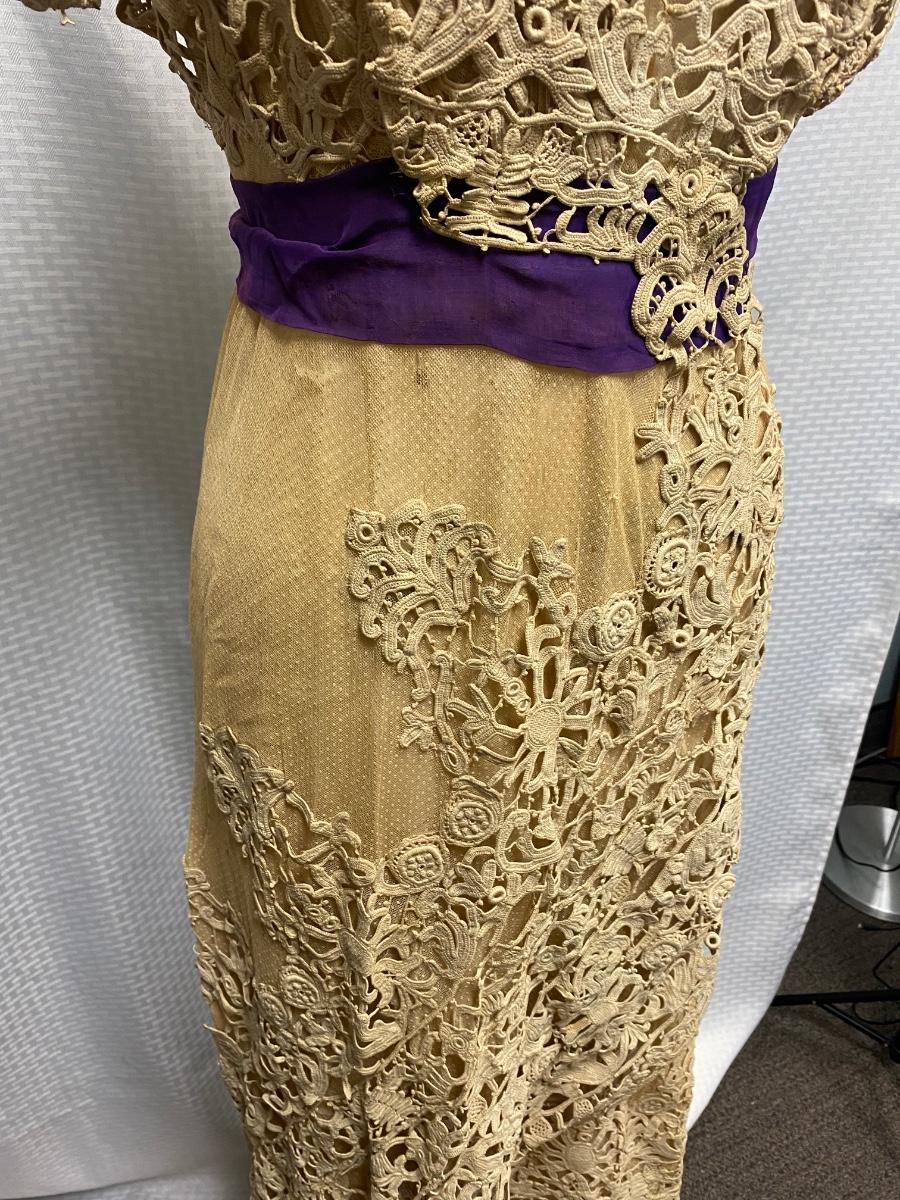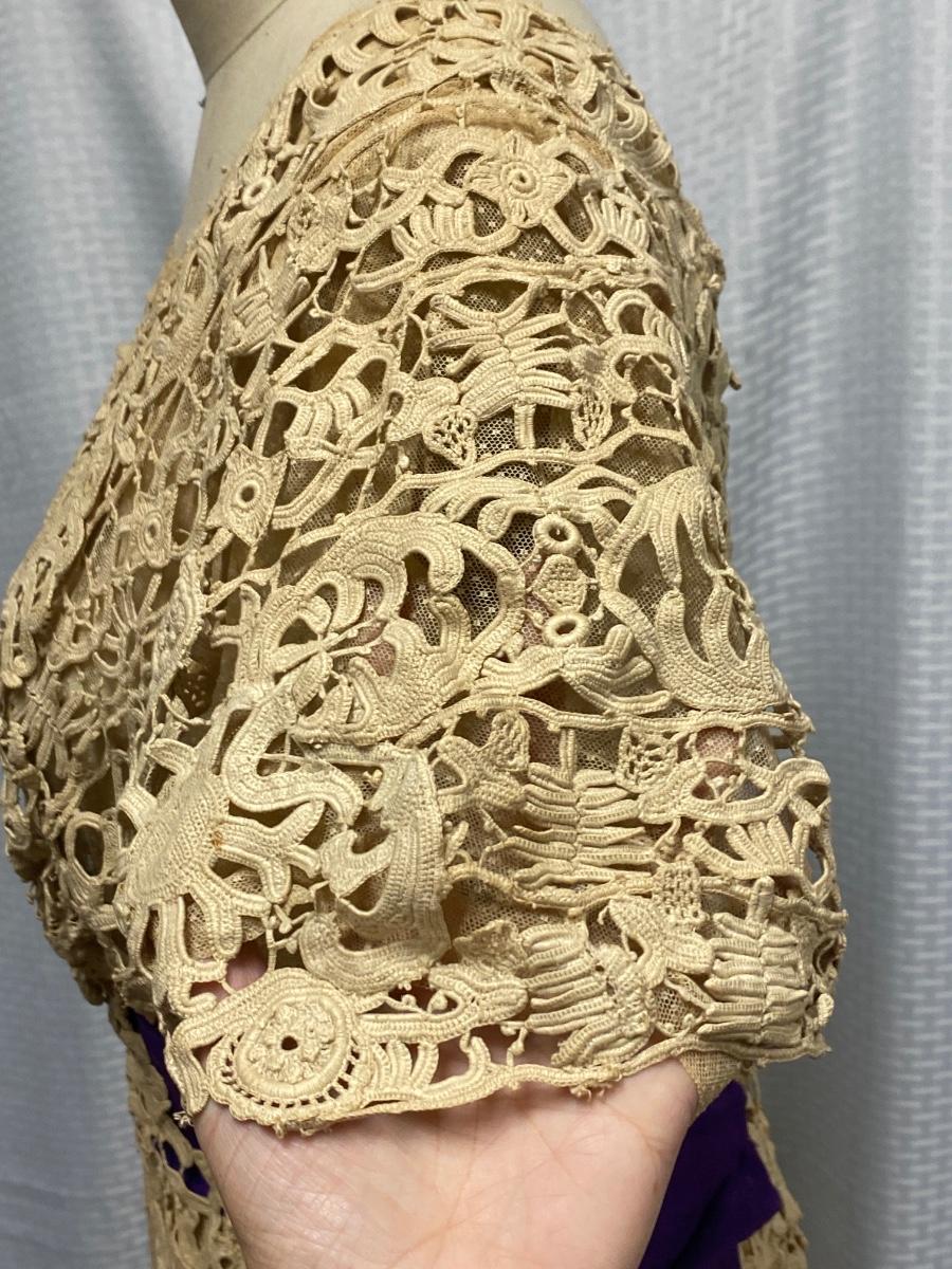 Vintage Antique Heavy Lace Fitted Dress with Violet Velvet Trim