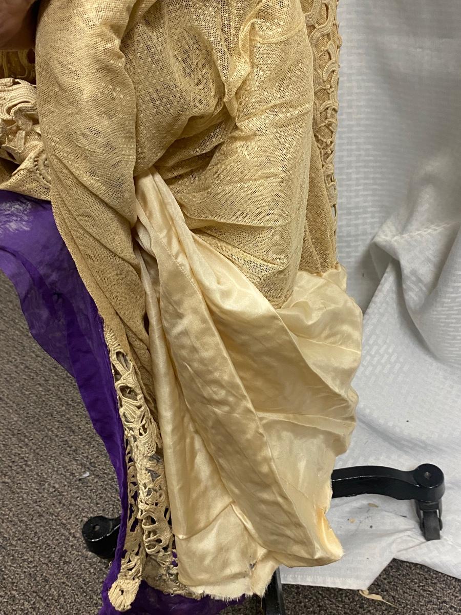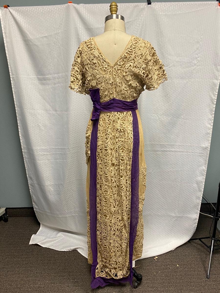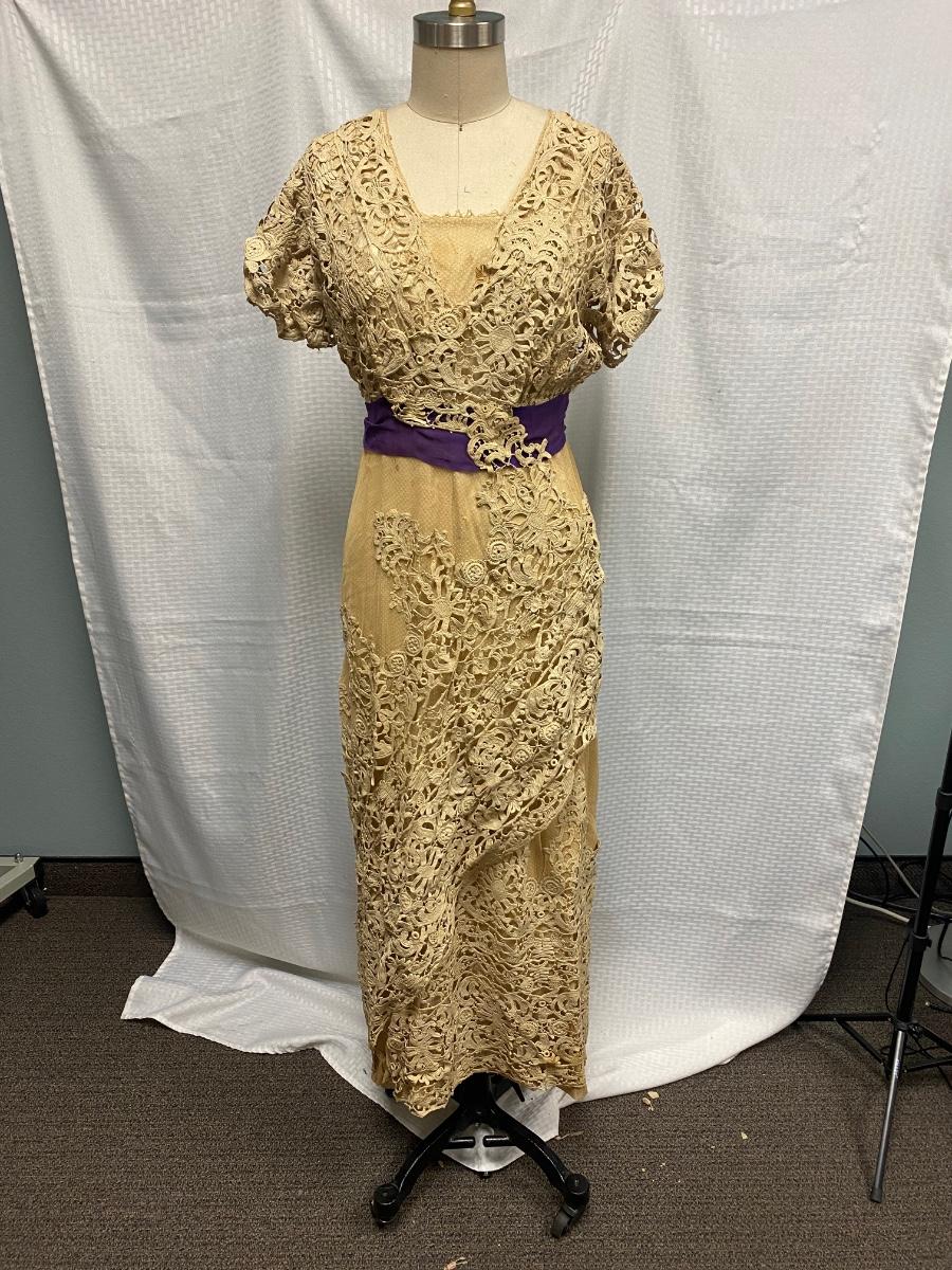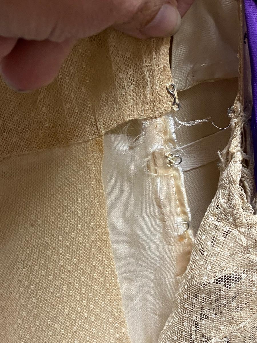 Vintage Antique Heavy Lace Fitted Dress with Violet Velvet Trim