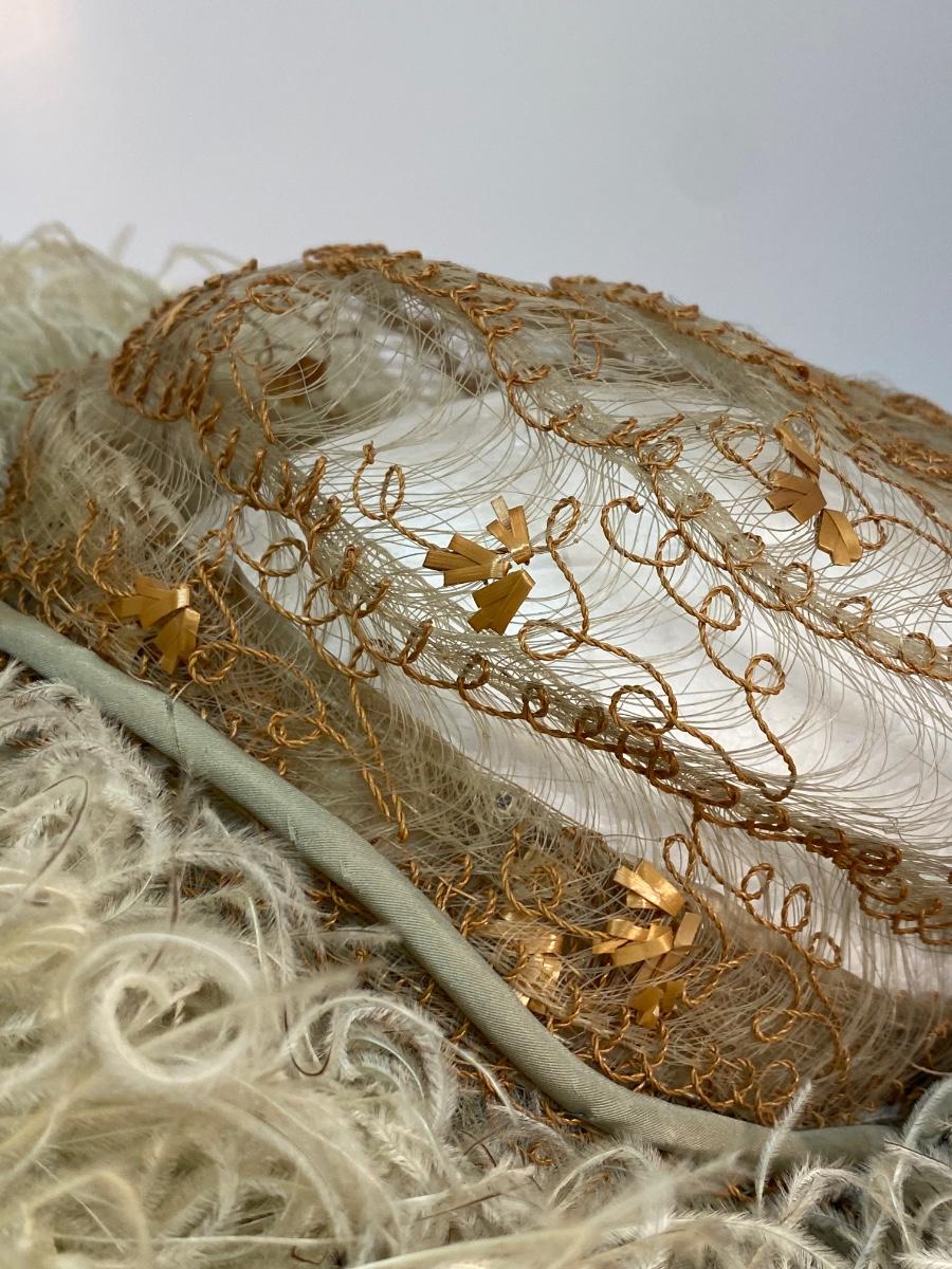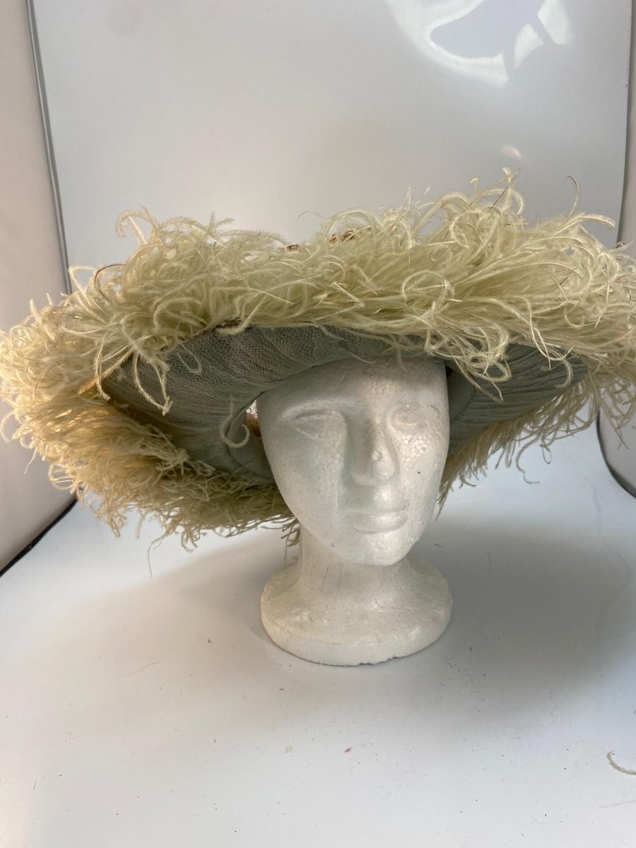 Vintage Antique Joseph Magnin Starched Lace and Ostrich Feather Hat