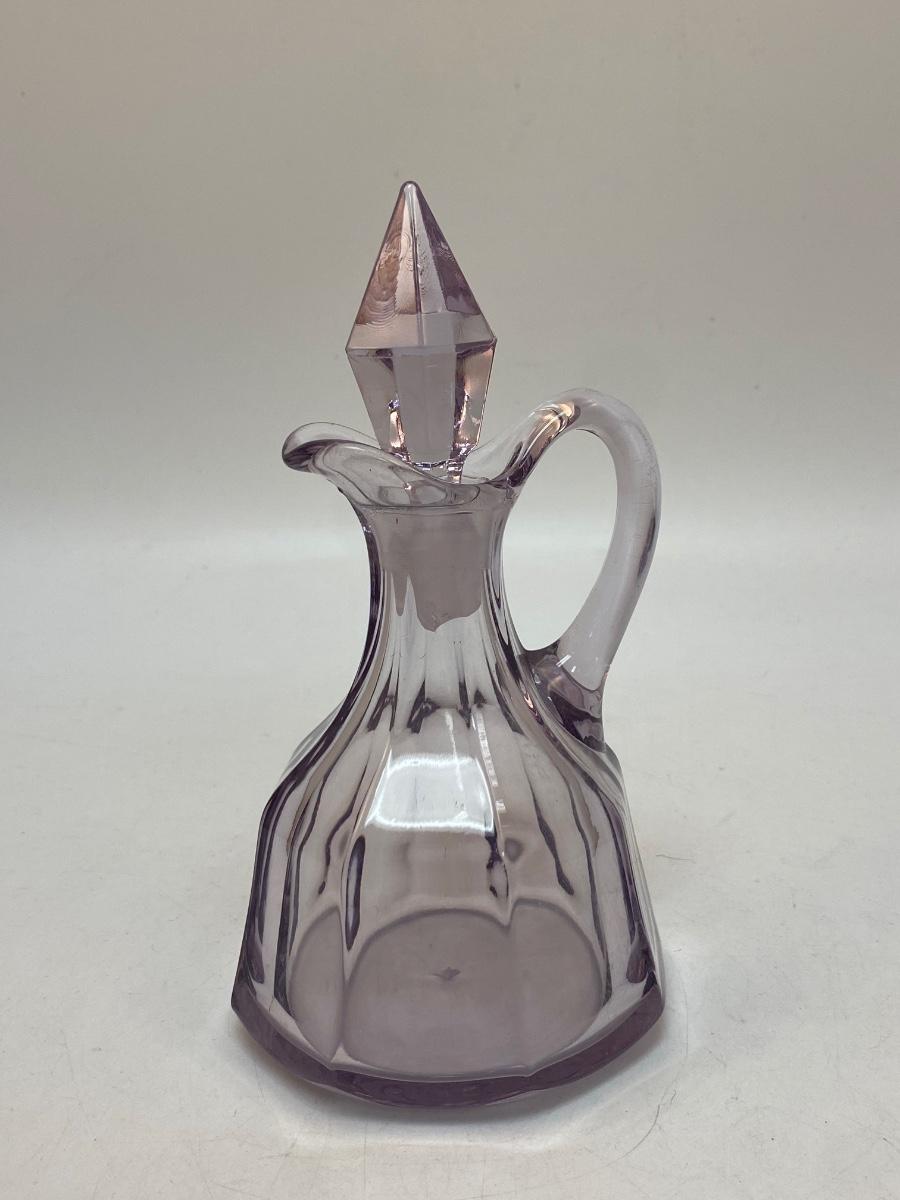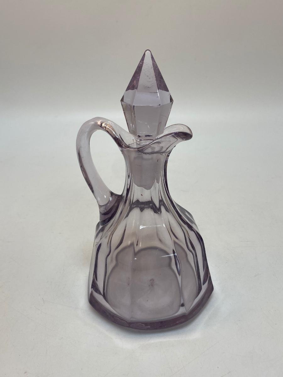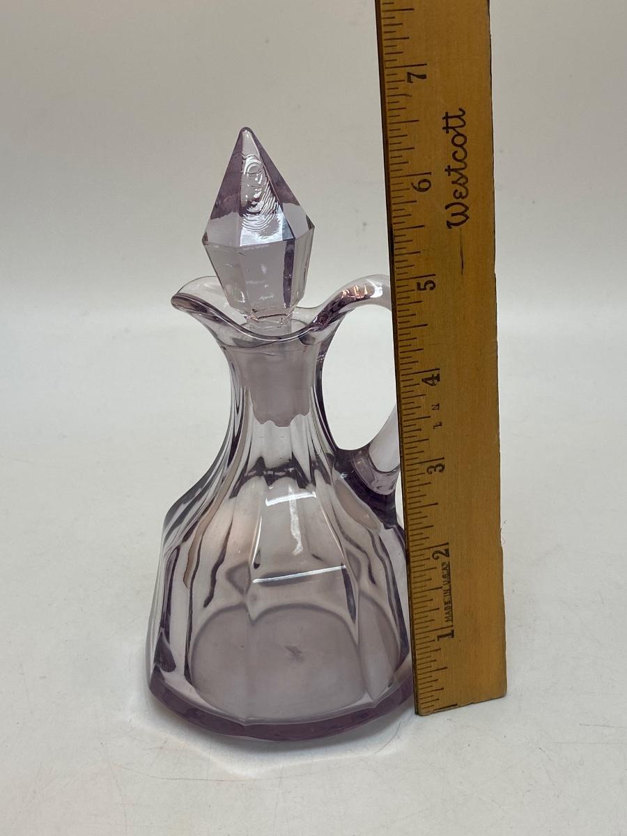 Vintage Antique Lavendar Pale Violet Sun Purple Glass Cruet Pitcher with Stopper