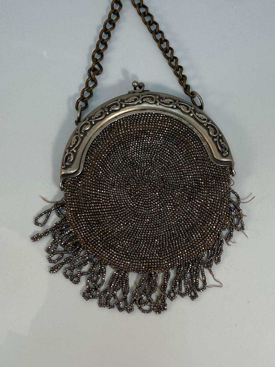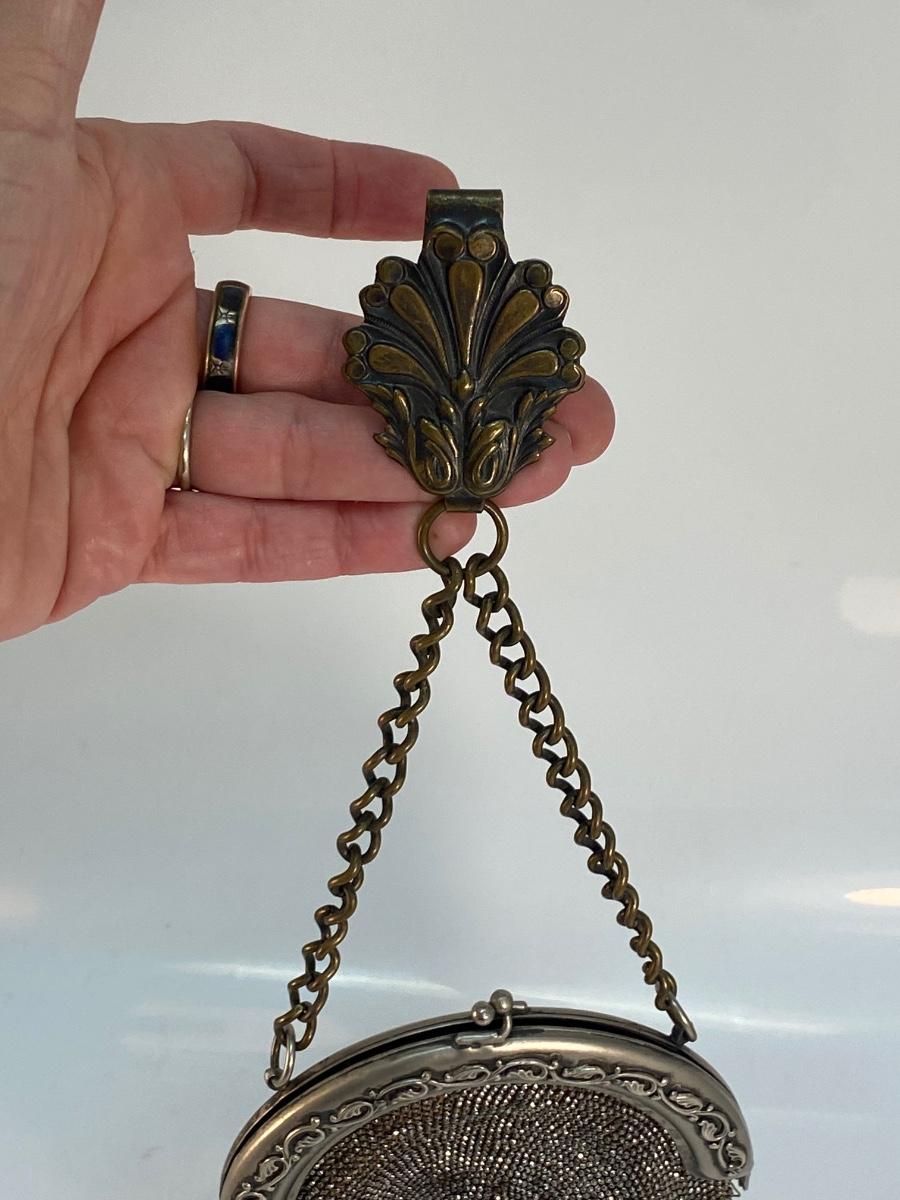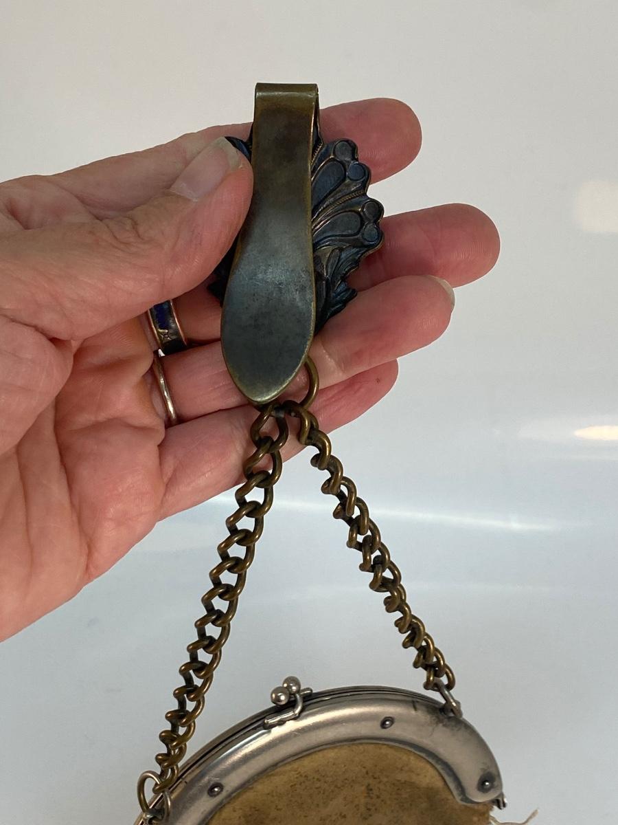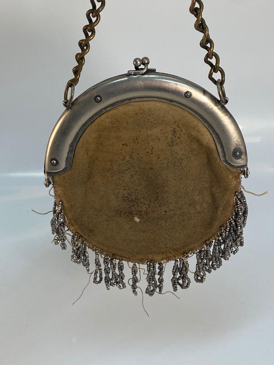 Vintage Antique Leather & Silver Glass Seed Bead Beaded Flapper Coin Purse with Belt Hook. Small size. Some of the beaded fringe is coming apart and needs to be fixed. no sterling marks on the framework or the belt hook. No holes in purse noticed either.